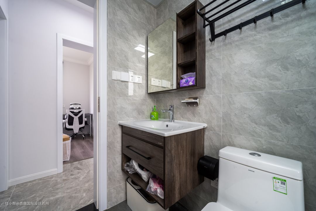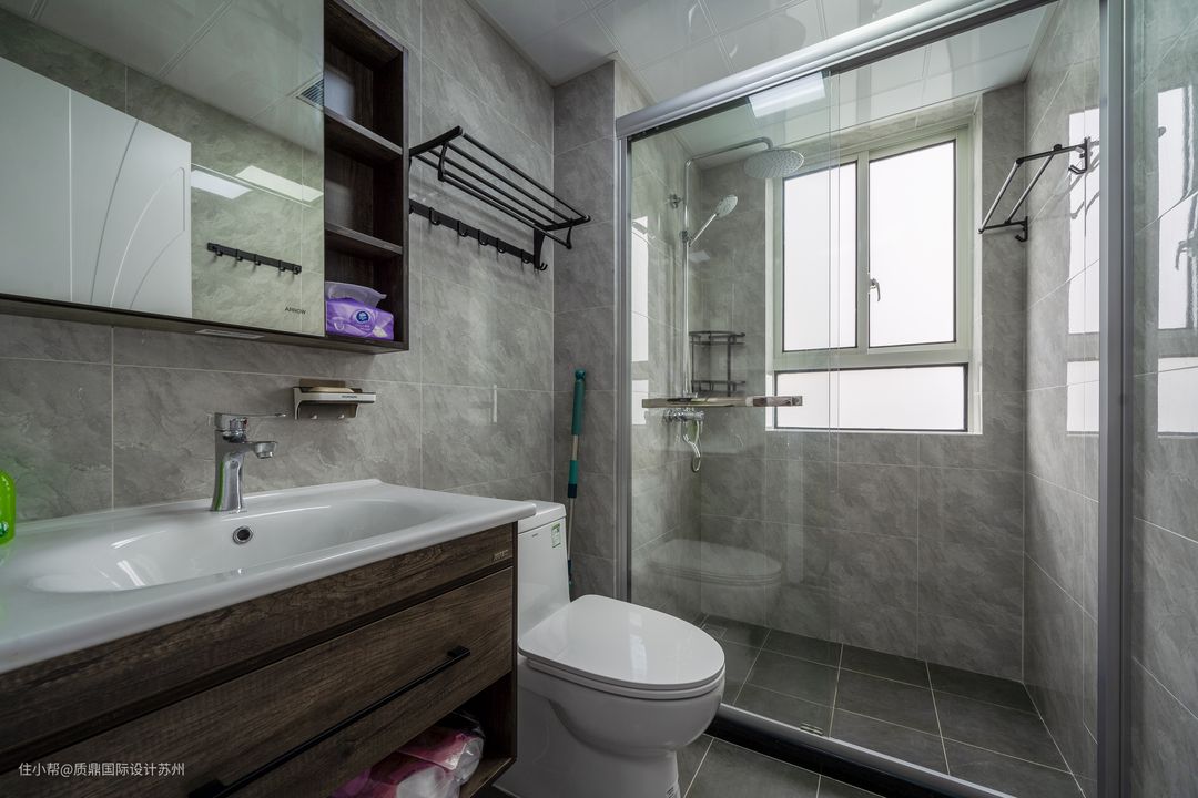 深灰与意大利浅灰大理石瓷砖的铺贴缔造了家里最后一个私人空间的完美性。幸福是早晨被阳光唤醒起床刷牙的时候,也是当身体沉入温暖的水浴中被带走一身疲惫的时候