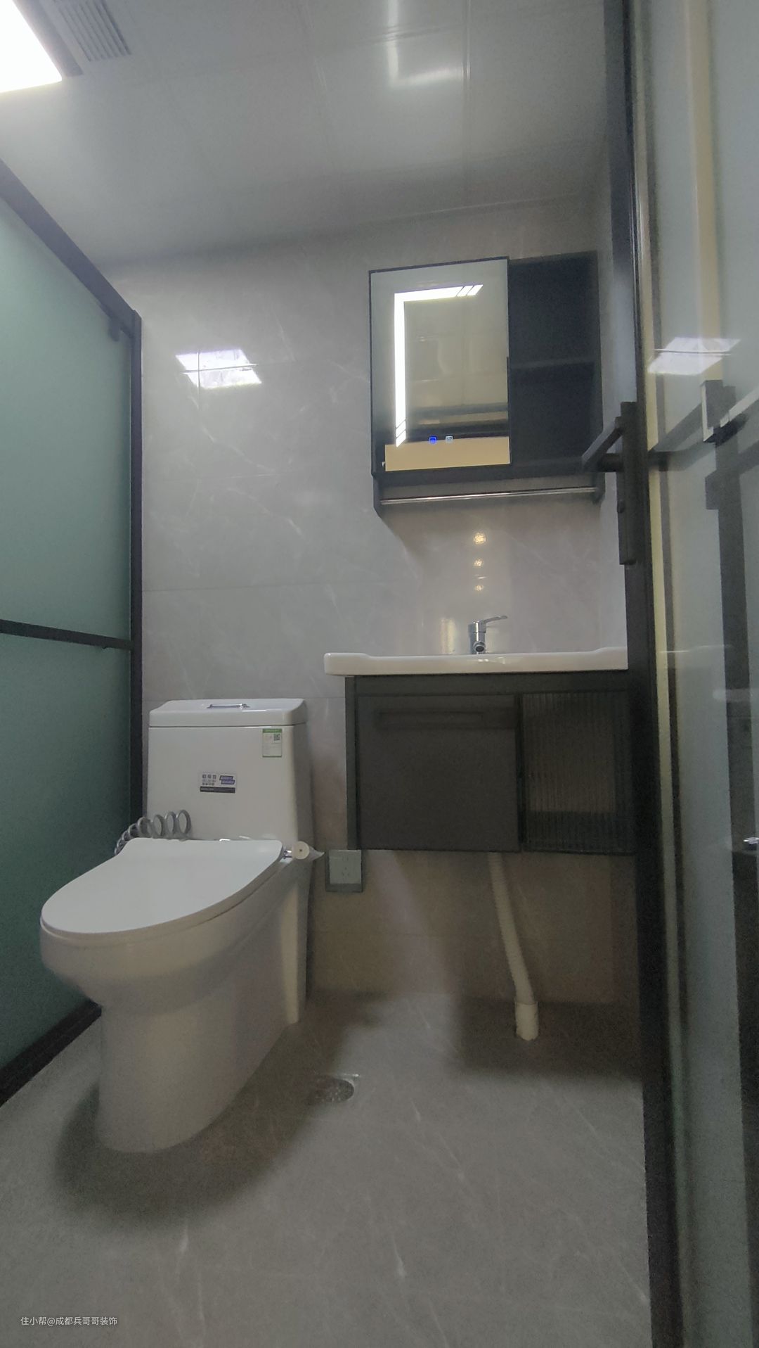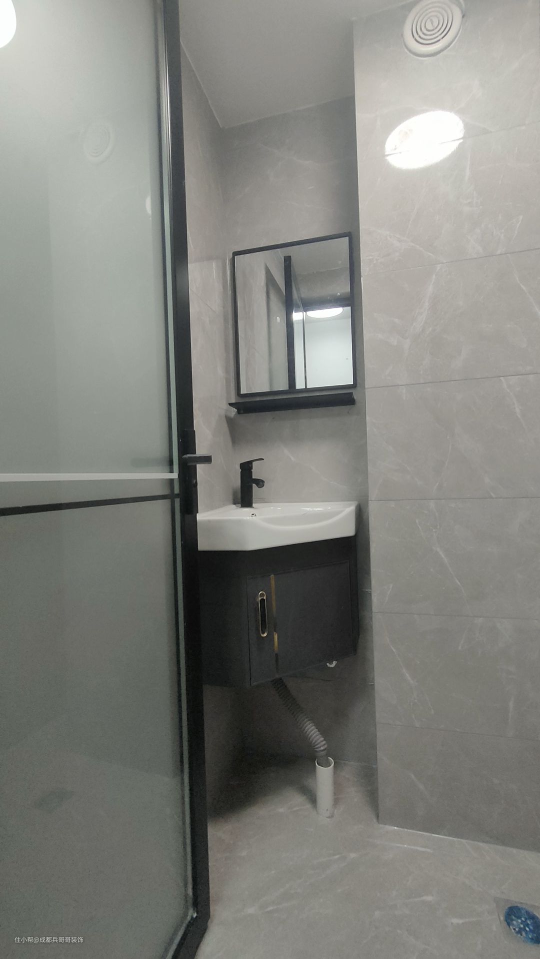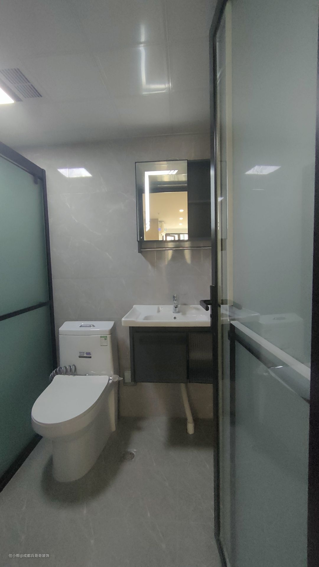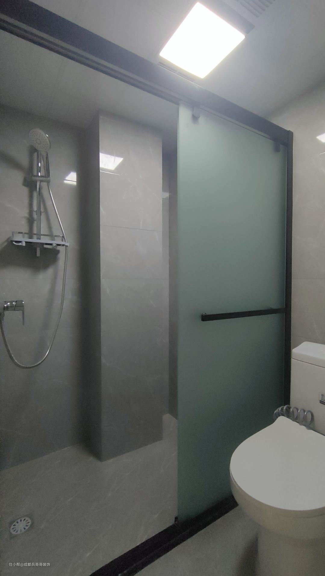 一楼卫生间,流行式干湿分离,利用很小的空间完成五脏俱全的功能👍长度仅有1.685米,宽度1.385米,面积不到3个平方,拥有马桶区+盥洗台+独立淋浴间,超赞的设计,很喜欢~~