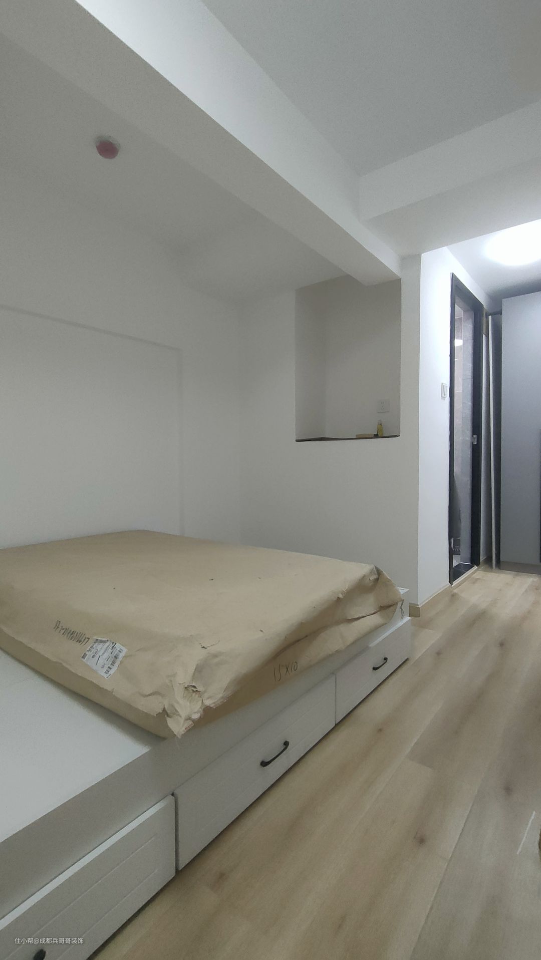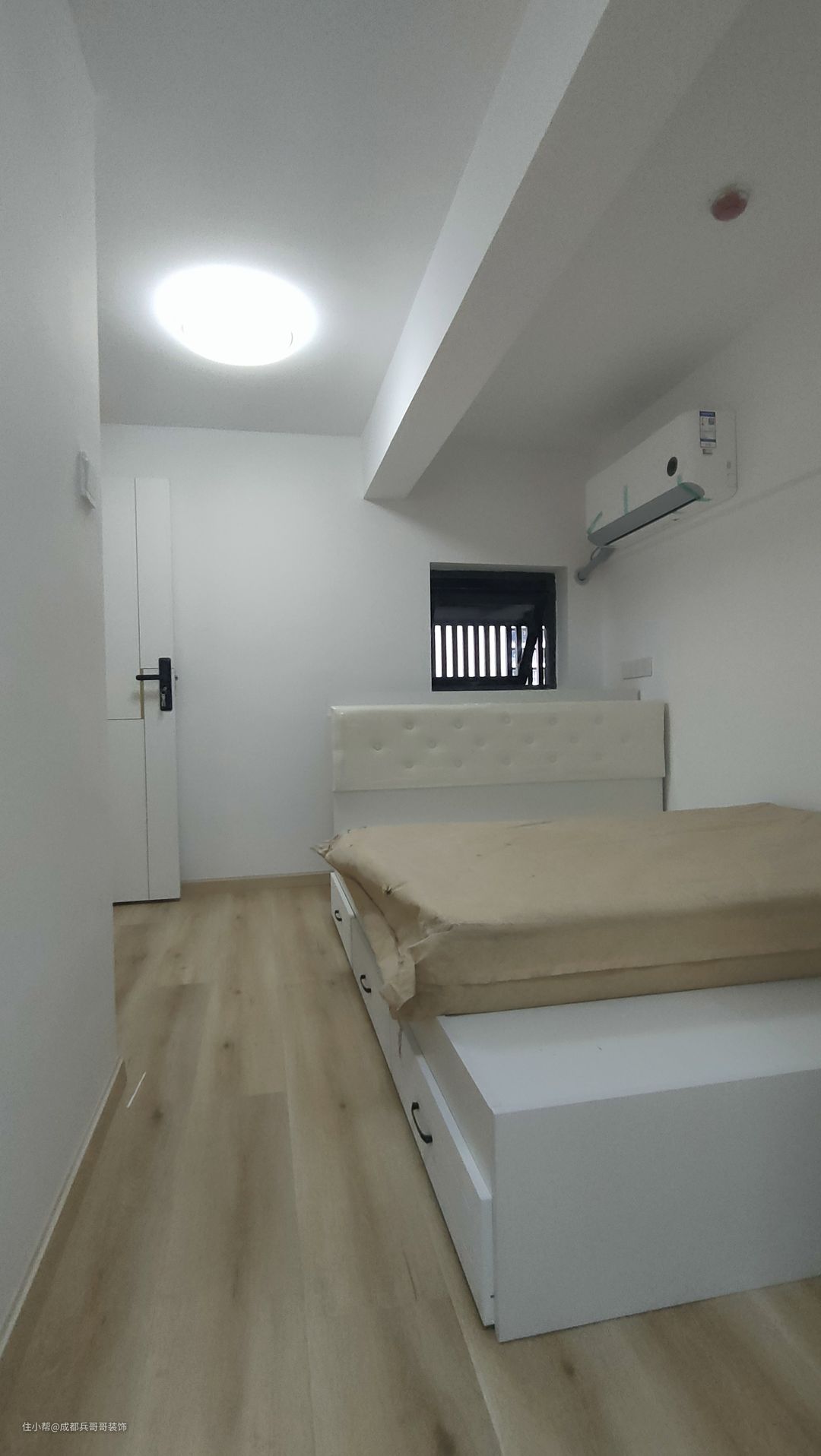 二楼次卧,是儿童房,拥有独立卫生间+一米五的床+成品衣柜,满足室内基本使用功能。整个公寓选用白色为主色调,一楼灰色瓷砖,二楼原木色木地板,视觉感给人一种雅致、自然的氛围感,简约不复杂,还原空间本质的美感……