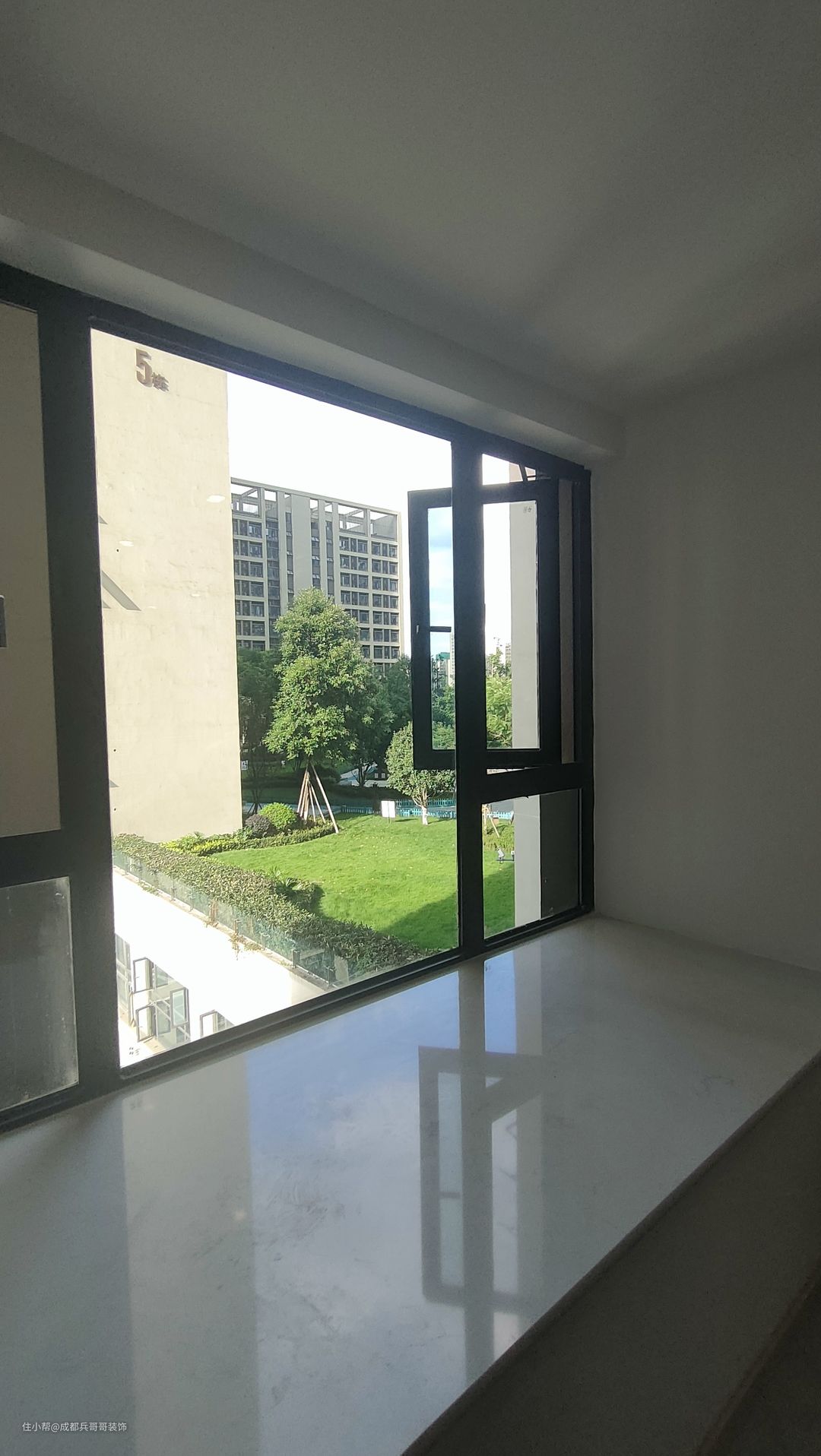 一楼客厅,开放式设计,客餐一体,拥有独立飘窗台,可以改造成日常休憩区,看看窗外风景还不错~~ 客厅一面墙做电视区,另一面墙安置沙发,墙面白色乳胶漆刷满,简约自然干净,很舒适~~