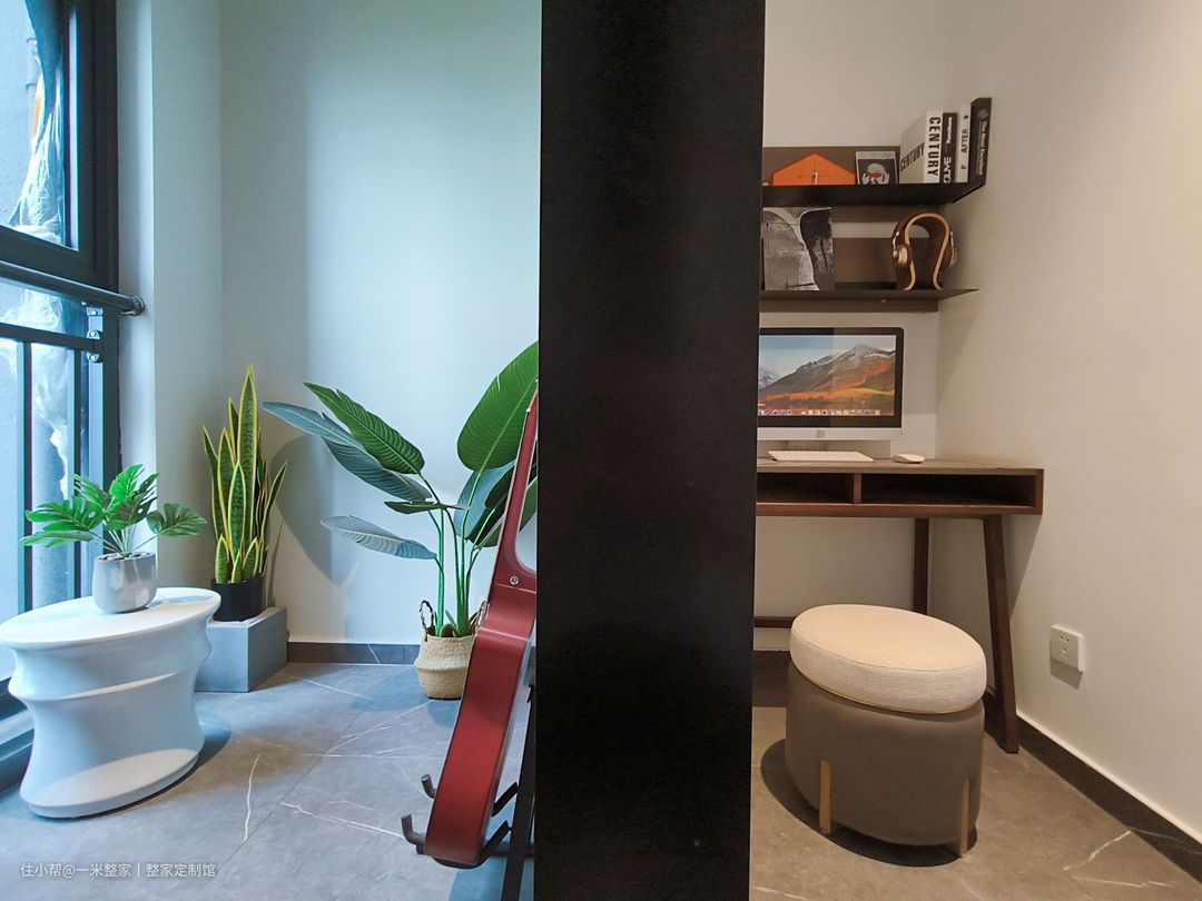 次卧是为主人的孩子设计的,所以选用了许多童真童趣的元素。大海的蓝色的选择,让整体氛围更加静谧和谐,动物挂件可爱的同时也告诉小朋友要热爱大自然热爱小动物~。床边设计悬空学习桌,孩子想要学习也十分方便,同时悬挂的设计也方便清洁和打理~在衣柜摆放绿植,既在视觉上起到了舒适的效果,也让室内空气更加清新