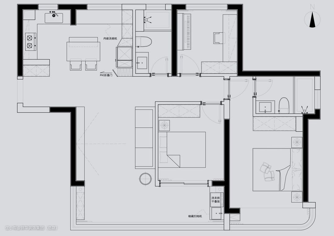 隐藏式折叠门和顶部暗藏轨道,美观的同时很好的解决了做饭油烟的问题。