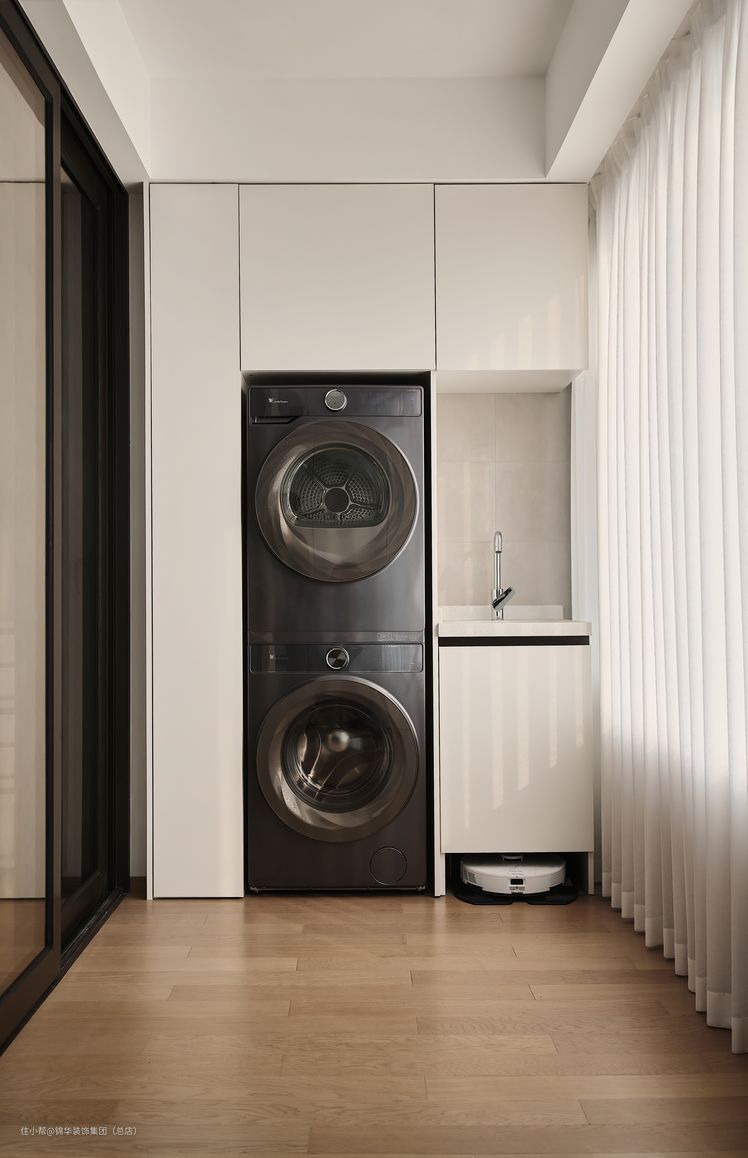 洗烘叠放搭配储物柜,洗衣池搭配扫拖一体机器人,满足家庭日常洗护需求。生活阳台和休闲阳台分开,收纳有序,整洁美观。 项目风格:现代简约风 项目地址:南京-香港嘉华嘉宏峰 项目面积:116㎡