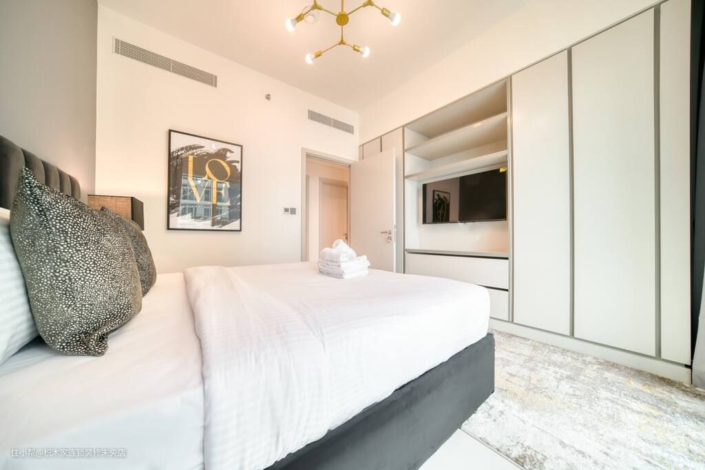 主卧室采用了极简的全屋家具设计,避免了复杂色系和材质的堆砌,使得空间更加开阔,暖色调的运用更是增添了一份温馨的氛围。在色彩搭配上,选择了简单而经典的白色、米色,同时加以黑色的点缀。通过对色彩的巧妙运用,卧室空间更加和谐,给人一种简单而优雅的感觉。 为了满足卧室的收纳需求,设计师依靠墙体设计了一款顶天立地式的衣柜。这款衣柜不仅提供了大量的收纳空间,还能够保持卧室的整体整洁。衣柜的设计简洁而大气,与整体空间风格相得益彰。