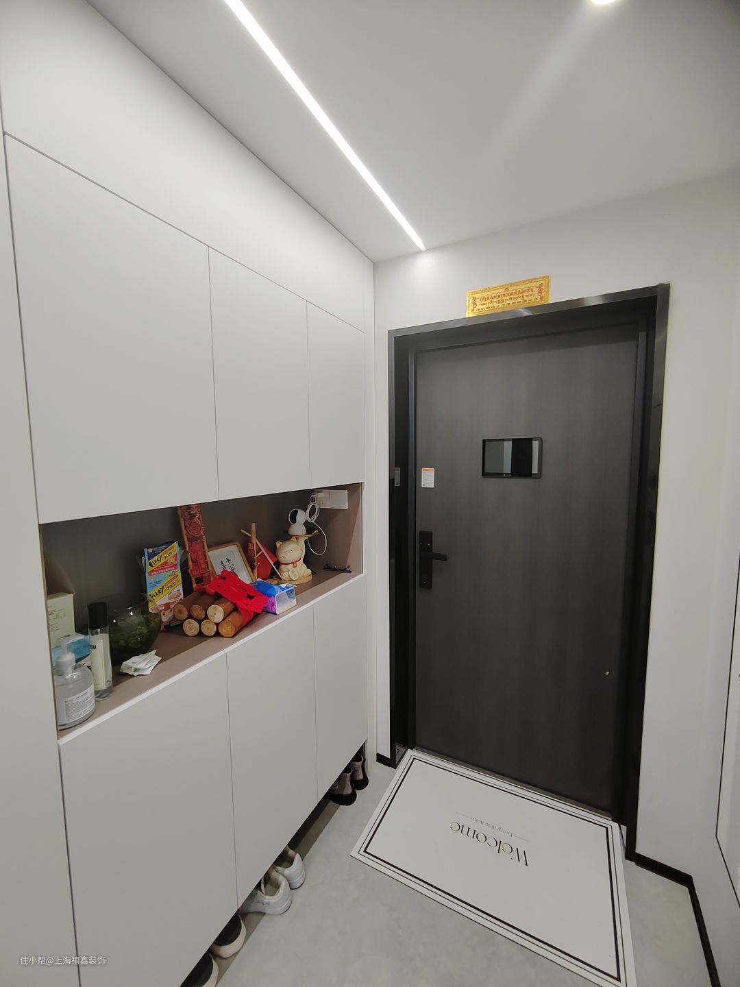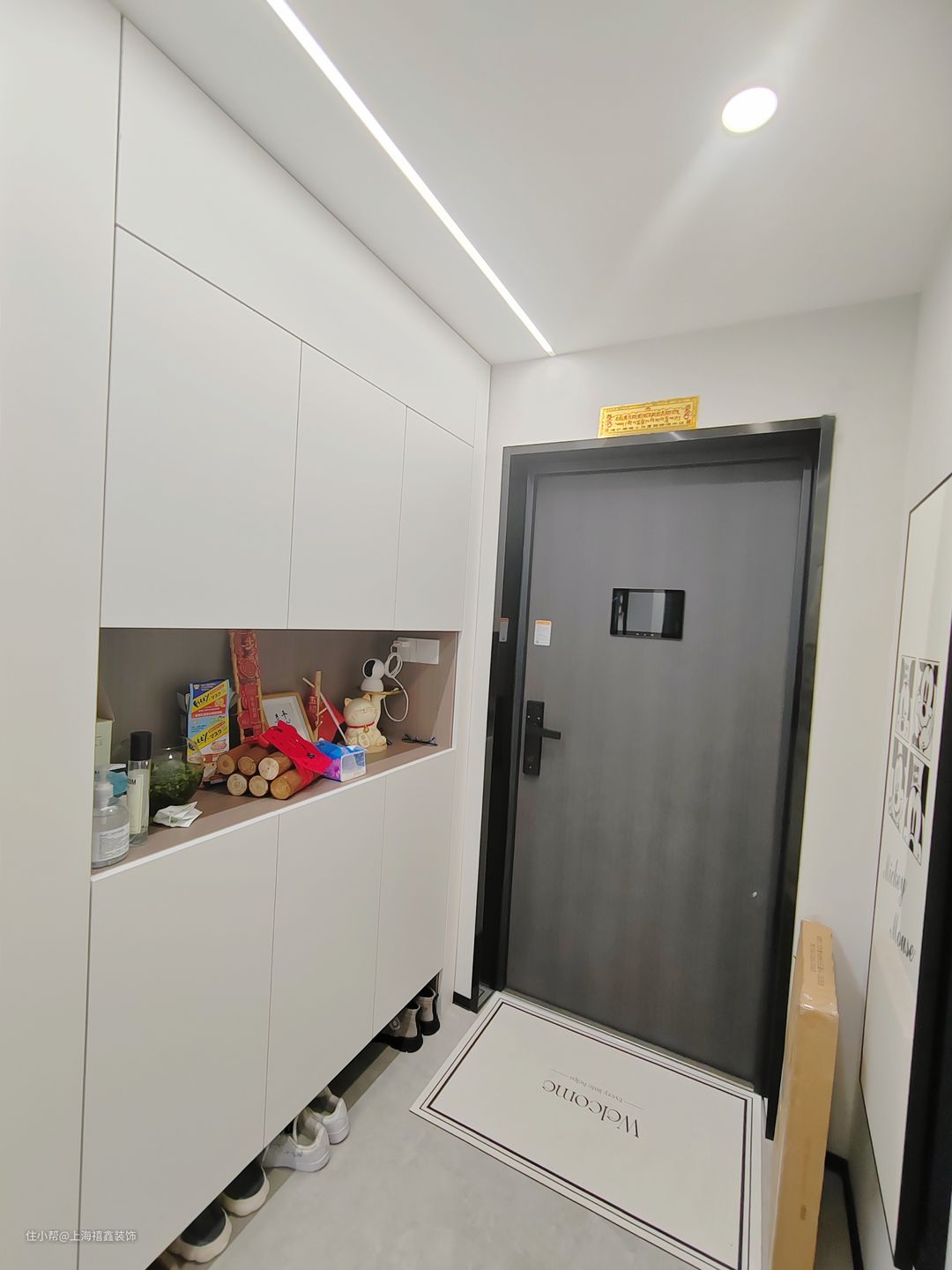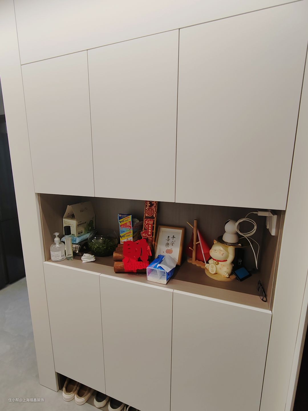 入户玄关作为家的第一道风景线,承担着接待访客、换鞋、置物等多种功能。这个玄关柜采用浅色实木材质,柔和的色调和温暖的触感让人感到舒适。底部悬空设计可以方便地放置鞋子,而中间的镂空部分则可以放置钥匙、包包等小物件,非常实用。