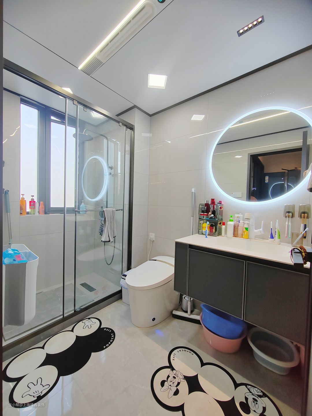 卫生间采用了干湿分离的设计,非常实用和舒适。将淋浴区和洗手区分开,方便使用和清洁。悬空式洗漱台,外观简洁大方,使用起来非常方便。淋浴室设计在窗户旁边,保证了充足的通风和采光。淋浴区内设有防滑地砖,保障了安全。整个卫生间设计简洁明快,非常符合现代人的审美。