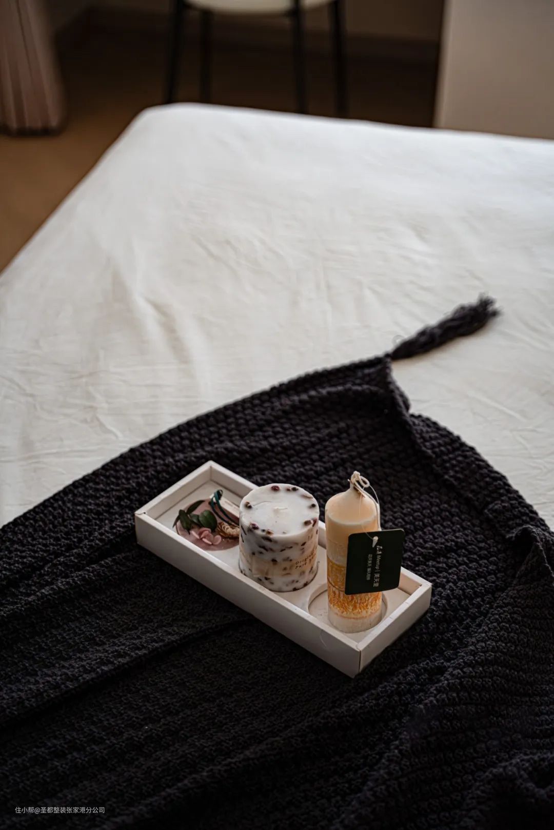 每一个单色调的夜晚,都被城市的霓虹灯添上情绪,走进城市中独属于你的心灵异想世界”。卧室空间简洁明亮,不需要太多华丽的装饰,尽显淡淡的素雅与质感。灯光设计上我们考虑,造型简约的壁灯置于床头柜之上,给简约的卧室空间增添一抹暖意。 靠窗做了排一字型的书桌,靠窗的悬浮桌可以用来梳妆、学习,放一下随手的摆件。增加功能同时又节省空间,还满足了储物需要。