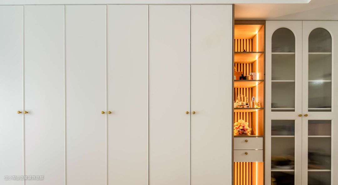 早晨看着还普普通通的卧室,当傍晚夕阳照进卧室的那一刻,瞬间温柔了好多。 卧室12平左右,1.8m的泡芙床,奶油色系的梳妆台、床头柜、窗帘和地毯,墙面钱滩银珠通刷,奶白色的大衣柜,真没想到,简简单单的软装布置出来,还有一点点高级感!