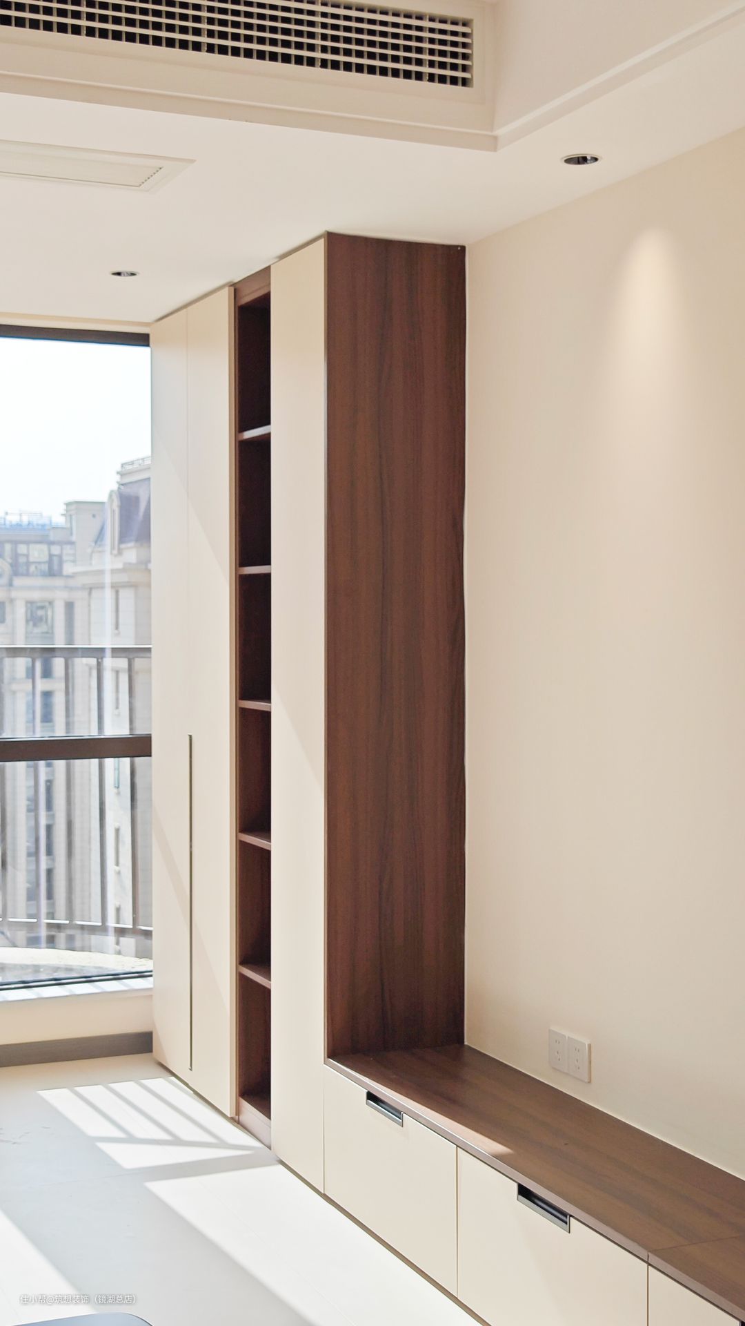 一楼主卧门洞位置改到客厅后,回卧室的动线更舒畅了,原墙面拆除并入主卧内,做一整排柜子。静谧祥和,更容易入睡。