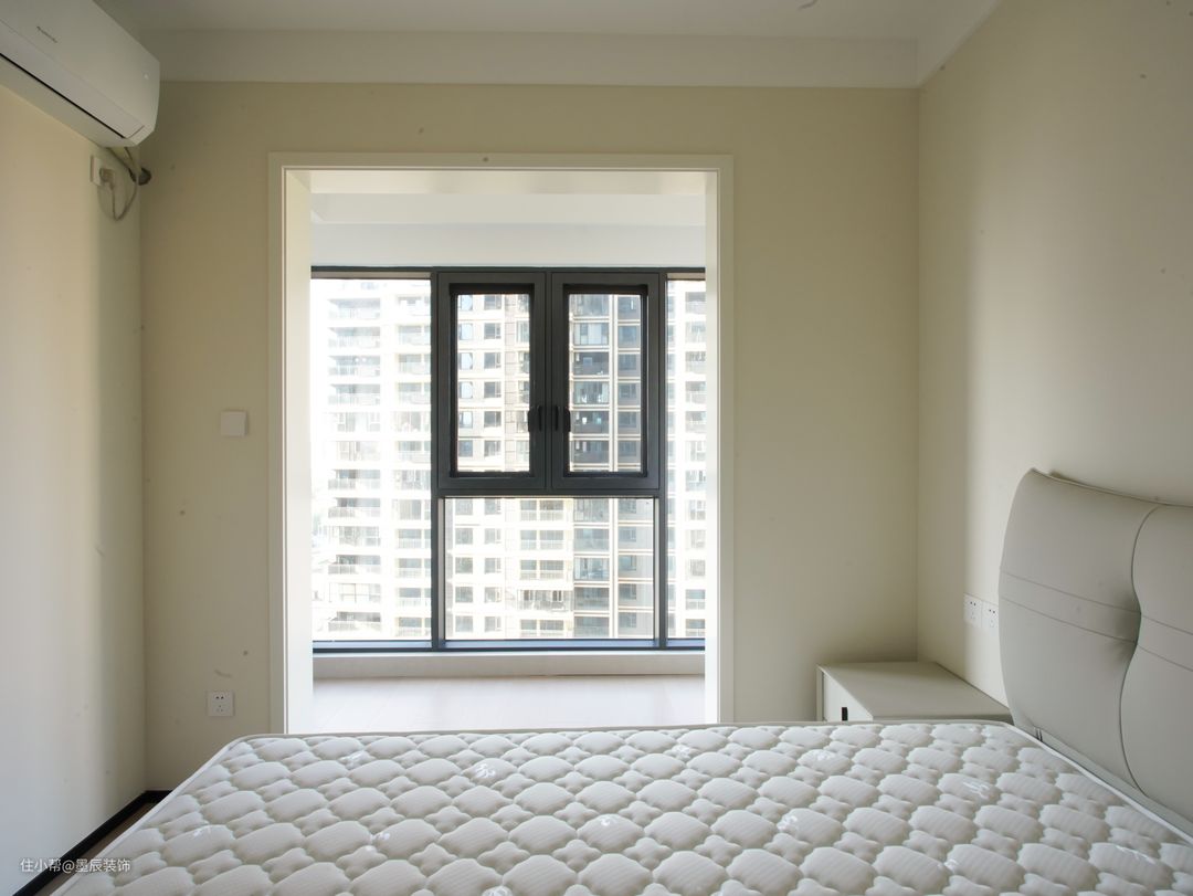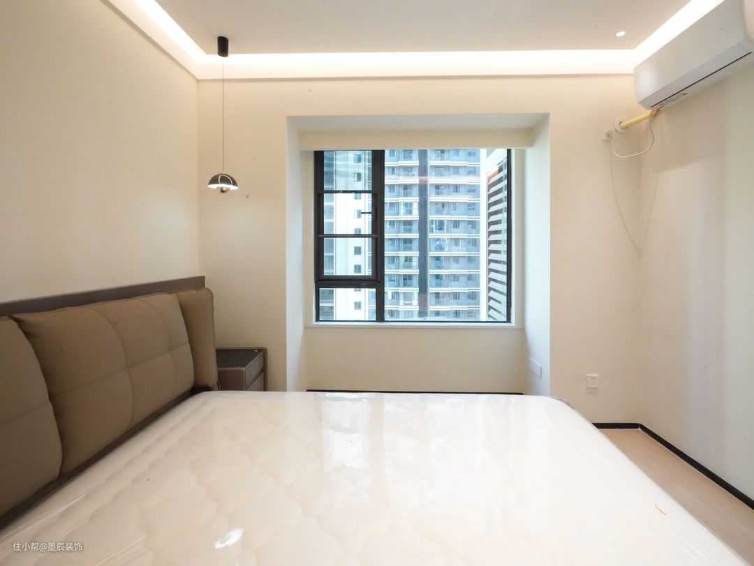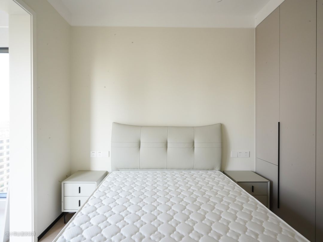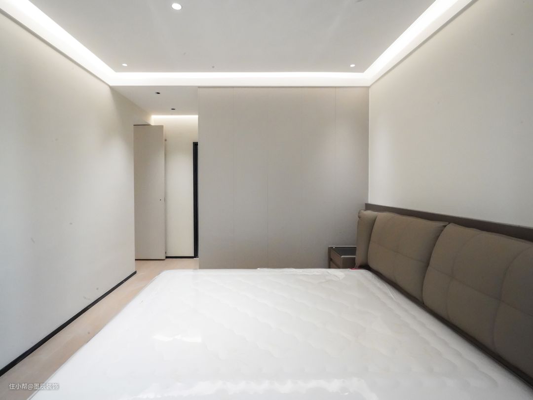 次卧做了单眼皮吊顶,没有复杂的床头背景,摒弃了多余的装饰,让空间更显大,达到简洁耐看的效果。