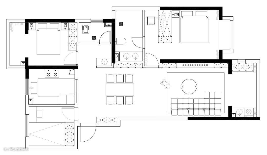 本期业主是一对夫妻,家里有一个可爱的儿子在上小学,两人在城市打拼多年,有了自己的积蓄,想要安定下来,所以购买了人生中第一套房。夫妻二人希望把家里装得现代一些,不需要太多复杂的色彩,最强烈的需求就是:“空间变大、通透宽敞、温馨舒适”。设计师根据屋主的诉求,借助开放式空间的巧妙设计,将有限的家庭空间以更加合理的方式排列组合,并通过多种照明方式、灯具和光线布局,实现更加多样化的照明效果,营造温馨的家居氛围。
