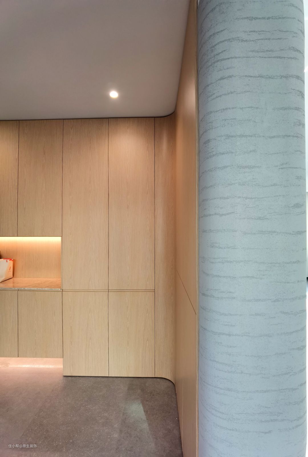 本案描述的是一家已经完工的工地,首先说的是进门玄关,我们做了一个定制的玄关柜,它包含了鞋柜和储物柜,既可以放鞋子,也可以储存物品。