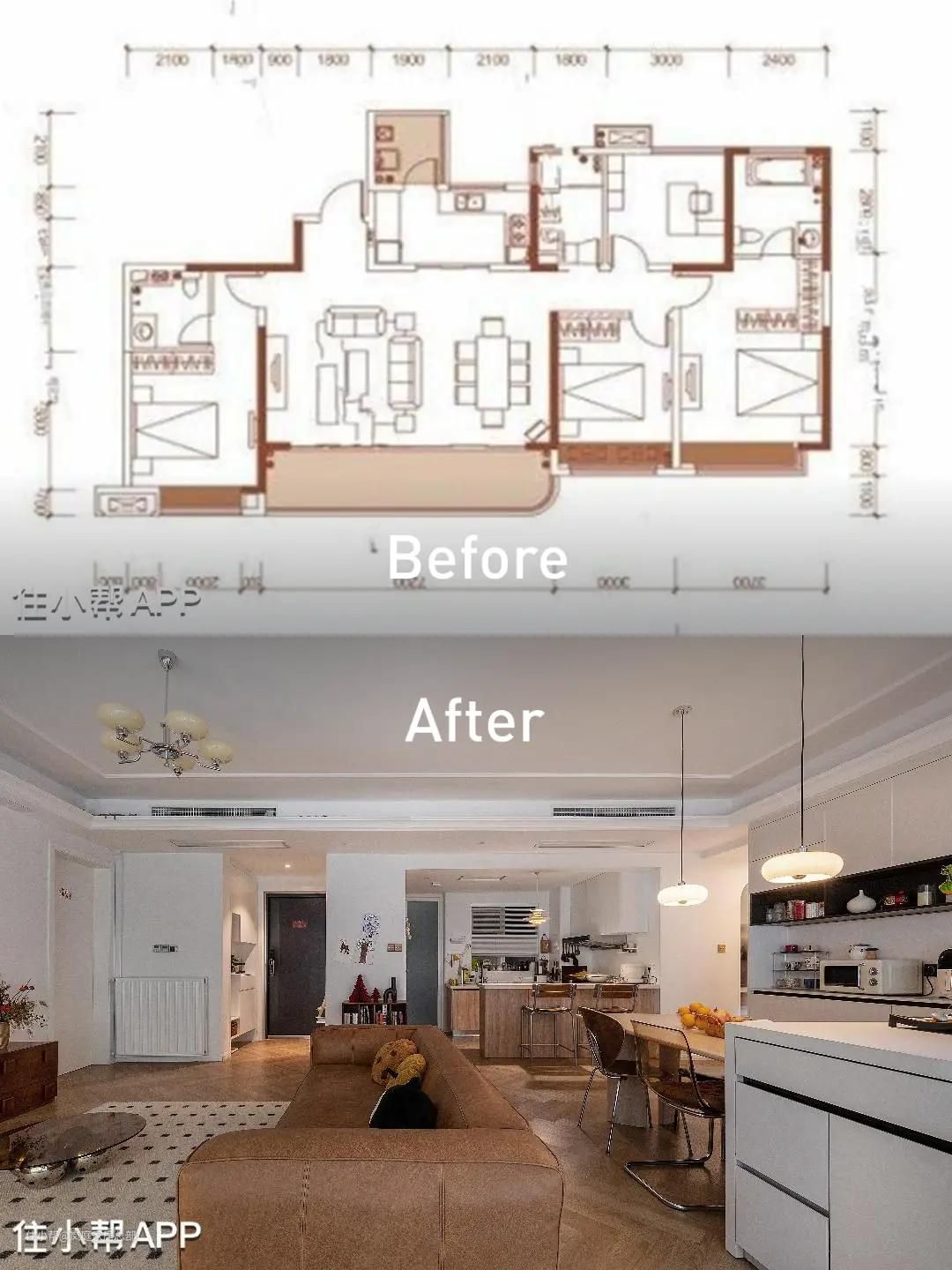这个家是横厅户型,套四三卫的布局,整体布局还是合理的,就是面积整体比较小,所以业主就想要让公区看上去显大一点。 厨房的户型就比较小,加上采光不是很好,所以空间显得更局促,于是业主就希望厨房能得到改善。