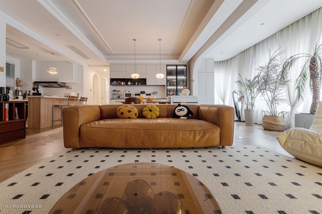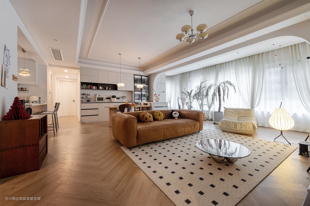 整个家改动最大的地方就是厨房,将厨房的非承重墙拆除做了开放式的设计,一下子就拉升了视觉效果,让客餐厨都显得更加宽敞大气。 客餐厅和阳台也做了打通,在增加采光的同时也保证安全性。墙垛拱形门的设计,也兼顾了颜值。