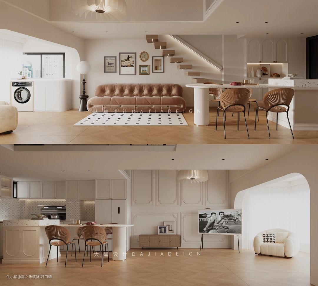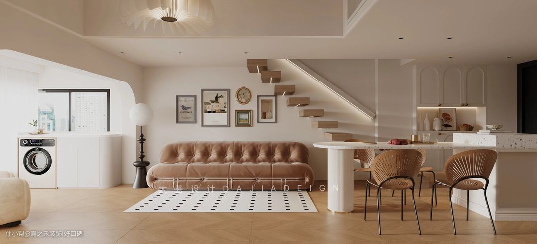 这套复式奶油法式小屋,以其独特的设计风格和温馨的氛围,让人不禁陷入其中。高级感的法式风格与温柔气质的棕色调完美融合,让整个空间充满了多巴胺的气息。