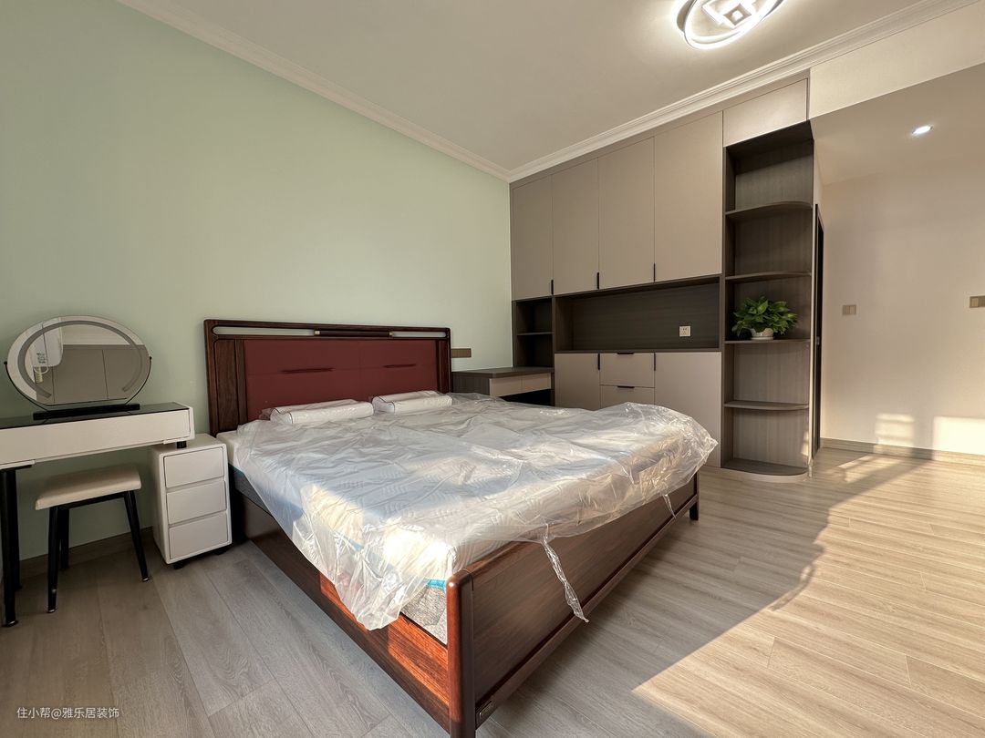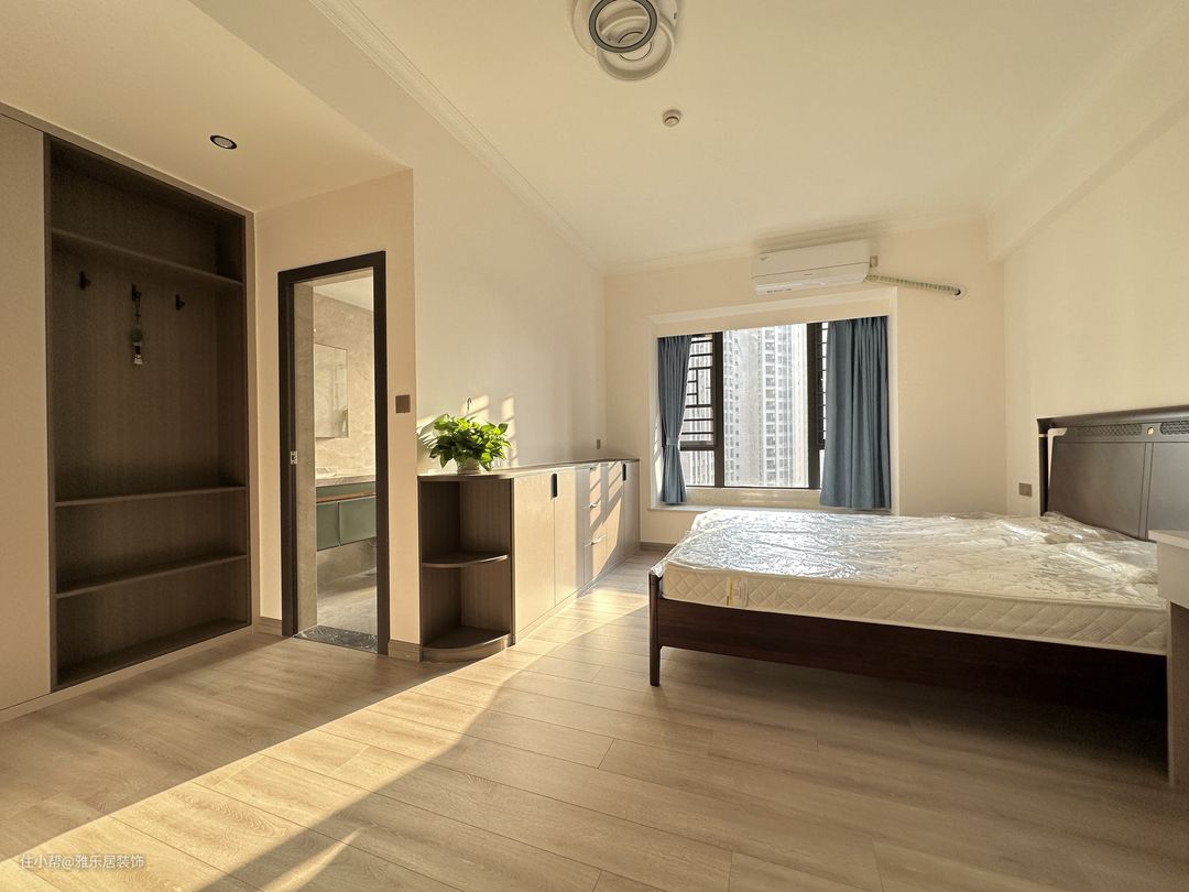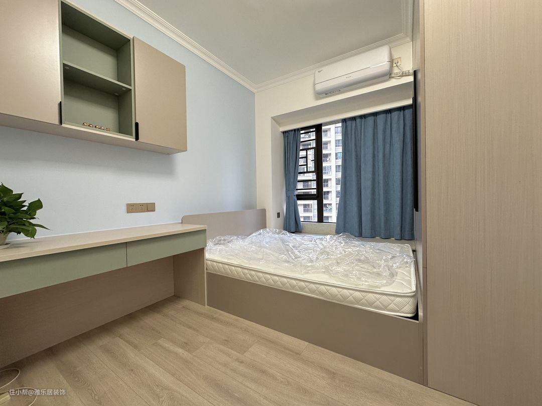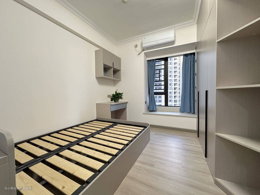 本套案例总共有四个卧室,两个套卧加两个儿童房,设计软装搭配均以实用为主,全屋定制统一配色,搭配纯色的窗帘,居住久了也不会审美疲劳,非常的舒适!