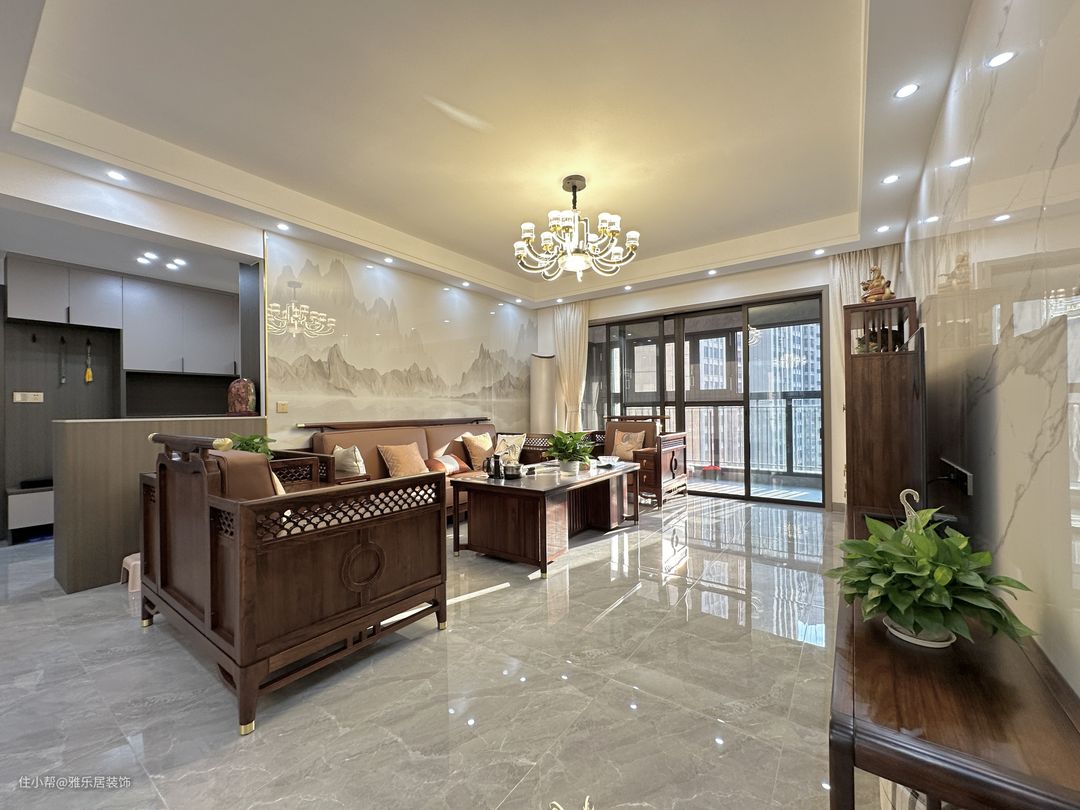 客厅作为家里面非常重要的一个区域,它的装修是可以影响到整体效果的。电视背景墙选择了水墨意境岩板造型,简约大气。沙发背景墙“靠山靠水”意头好又有格调。