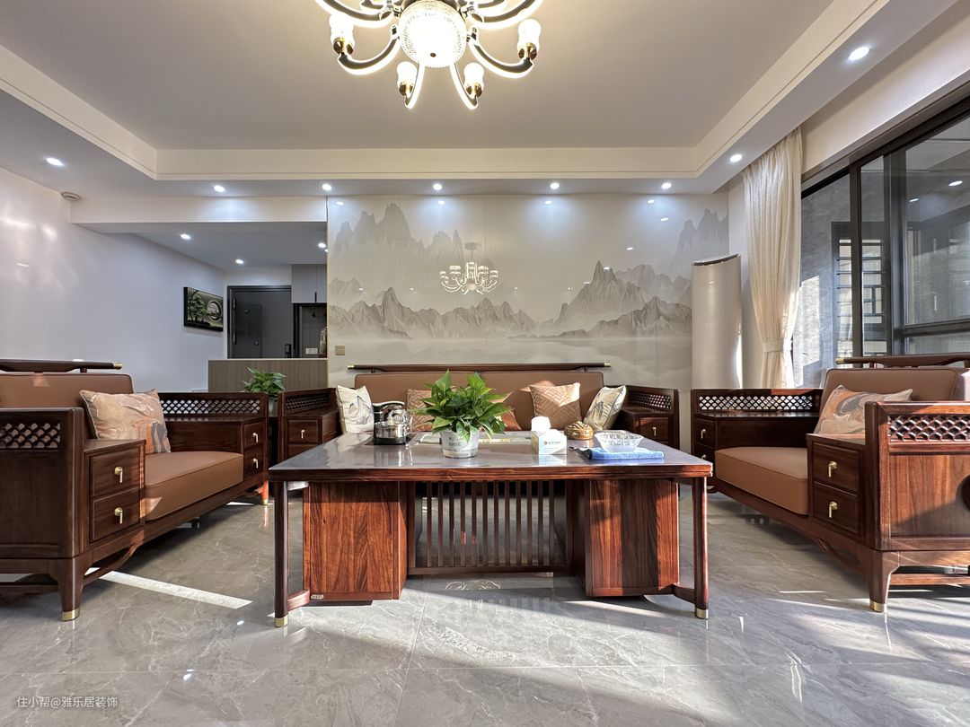 软沙发装方面既有新中式的元素,又有现代皮质沙发的舒适度,两者相得益彰!