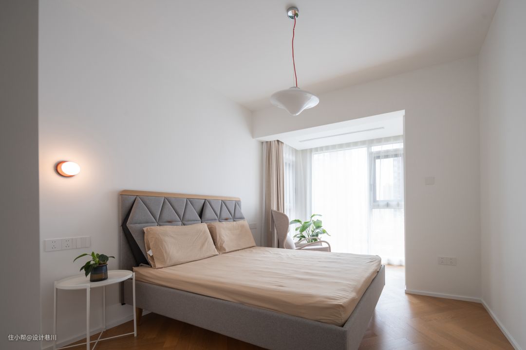 现在家里的孩子还小,由老人带着孩子睡。考虑到老人家东西多,以及未来孩子的收纳需求,老人房做了三个柜子,保证了充足的收纳。