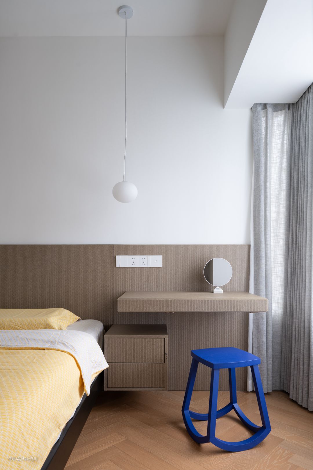 卧室的配置比较简单,留出了空间放一把休闲躺椅,偶尔老人家想要独处休息便可以回到卧室坐坐。
