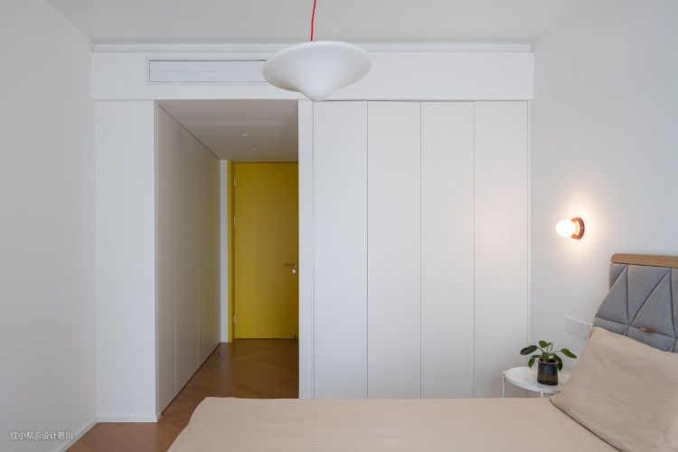 卧室内做了局部吊顶,统一过道、衣帽间、主卫的层高;卧室外则为了配合公区层高,加高了门套。