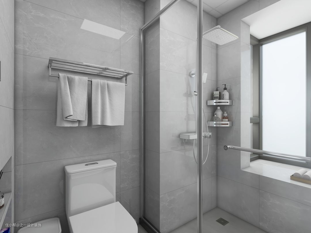 公卫内部是简单的干湿分离处理,银色不锈钢边框的玻璃隔断设计,简洁且优雅,加上白色瓷砖的通铺设计,营造整体清爽的舒适感。