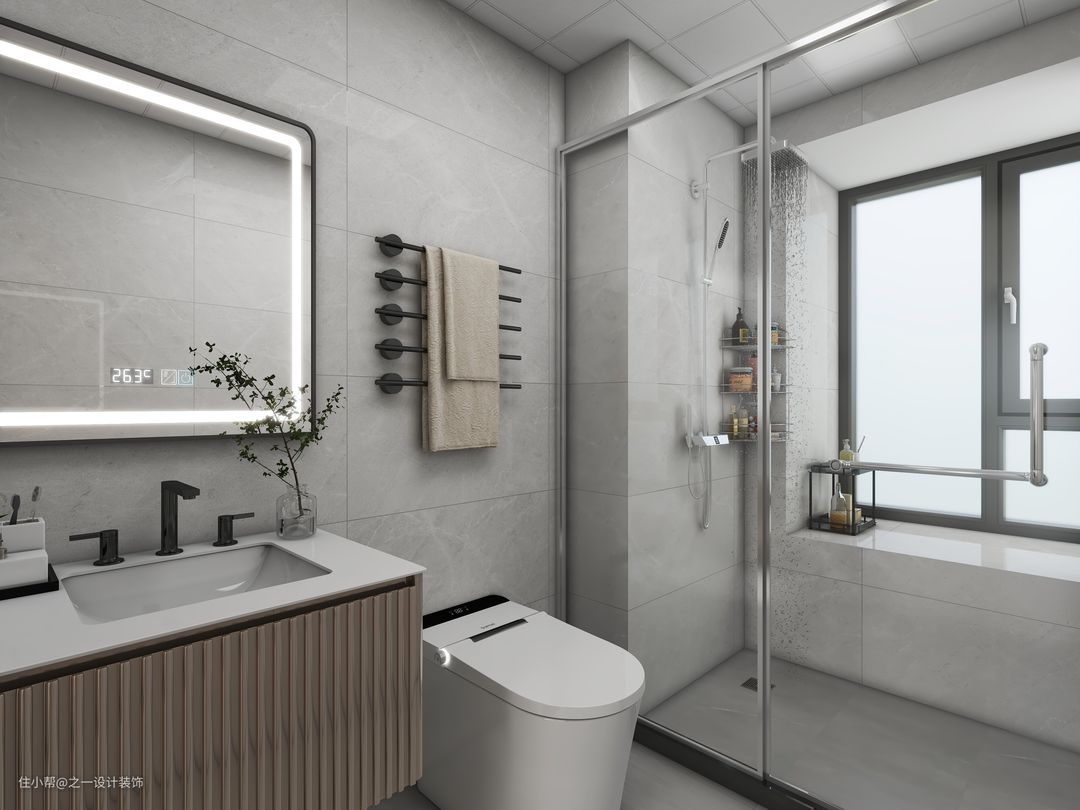 公卫做了经典的三分离设计,将洗漱区从中分离出来,提高卫生间的使用效率,有效的减少抢用卫生间的情况。