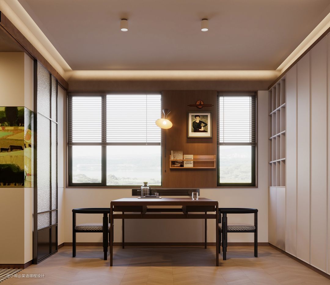 强调空间的开放性和通透性,我们合理利用空间,采用多功能家具,满足阅读、工作和储存的需求。靠近窗户的位置放置书桌和椅子,以便充分利用自然光线