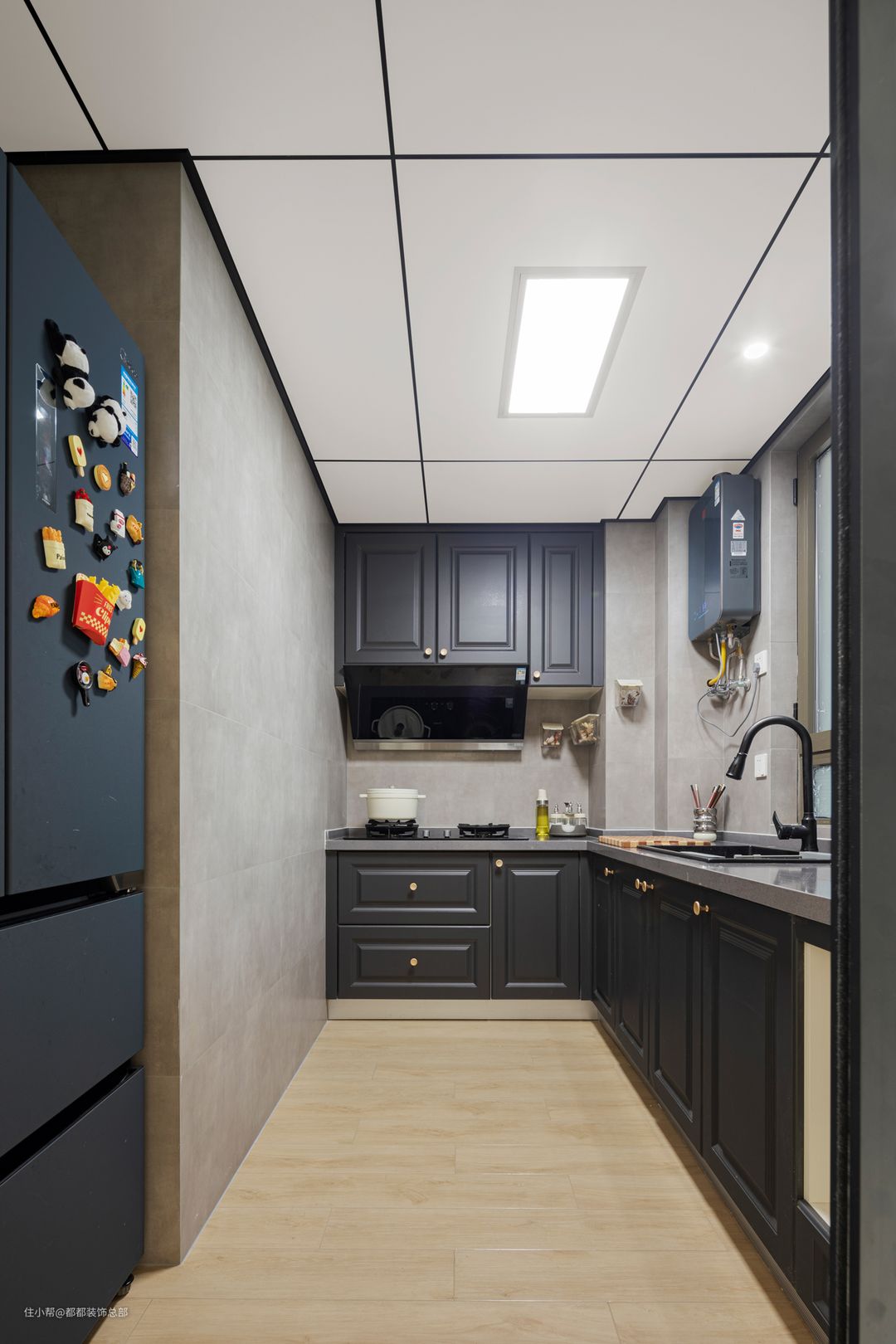 L形操作台,从右到左依次是备菜区→洗菜区→切菜区→炒菜区→盛菜区,动线流程,不得不说做饭都变得有趣了起来,闲暇之余,和爱的人一起做饭也是生活的小确幸。