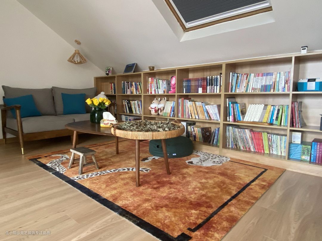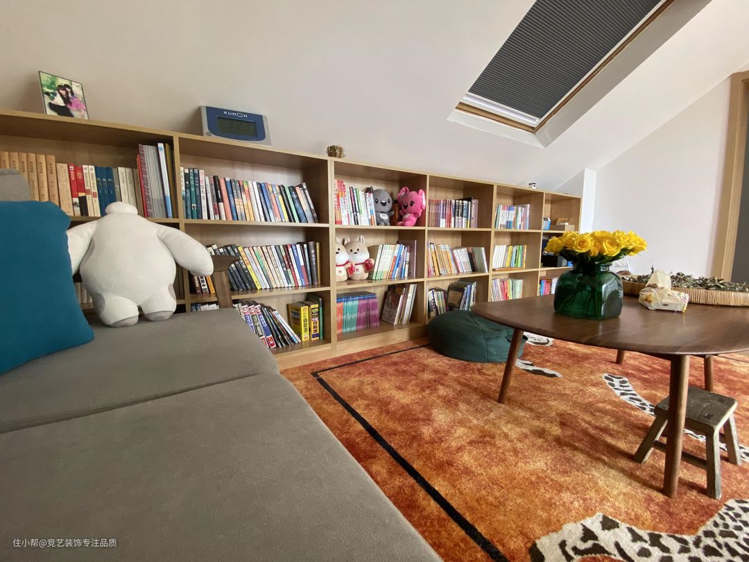 阁楼的位置还做了一个小书房,,空间虽小但是样样俱全,也不失为休闲的好地方