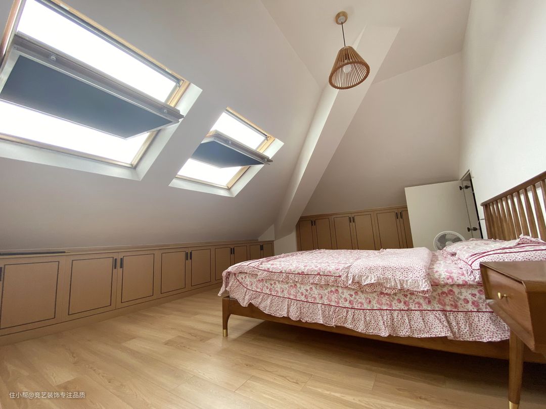 阁楼上的小房间层高很低,但是房间里有两个窗户也不会显得压抑,也是很好的观赏夜景的最佳位置,天气好的时候还可以在这里看到星星