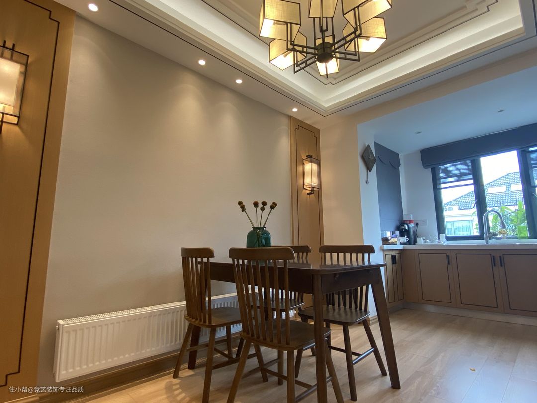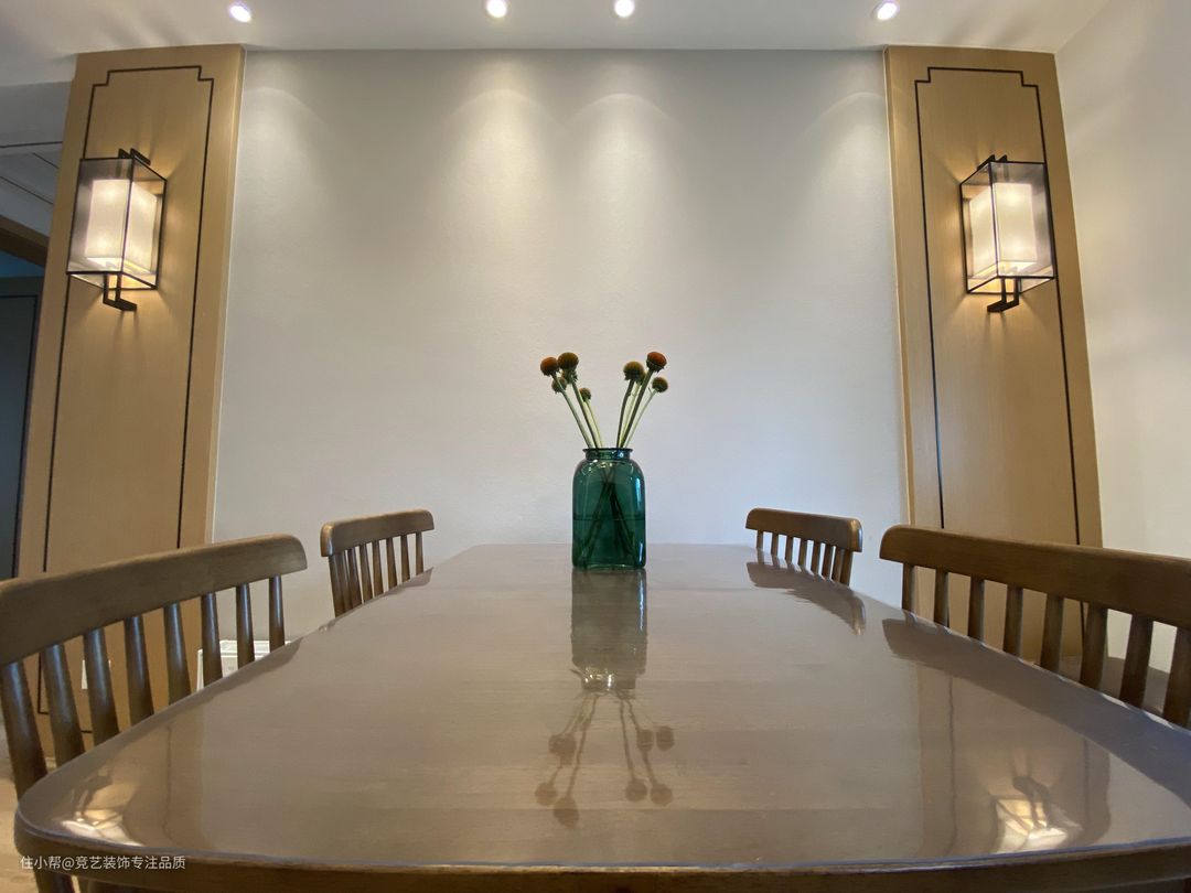 在餐桌的选择上也是用了实木餐桌,表面能看到木材真实的纹理,光纹理原色自然又健康,造型上朴实大方,线条饱满流畅,以其朴实无华的质感、栩栩如生的纹理、清纯亮丽的色泽,把居室环境装点得素雅、纯净