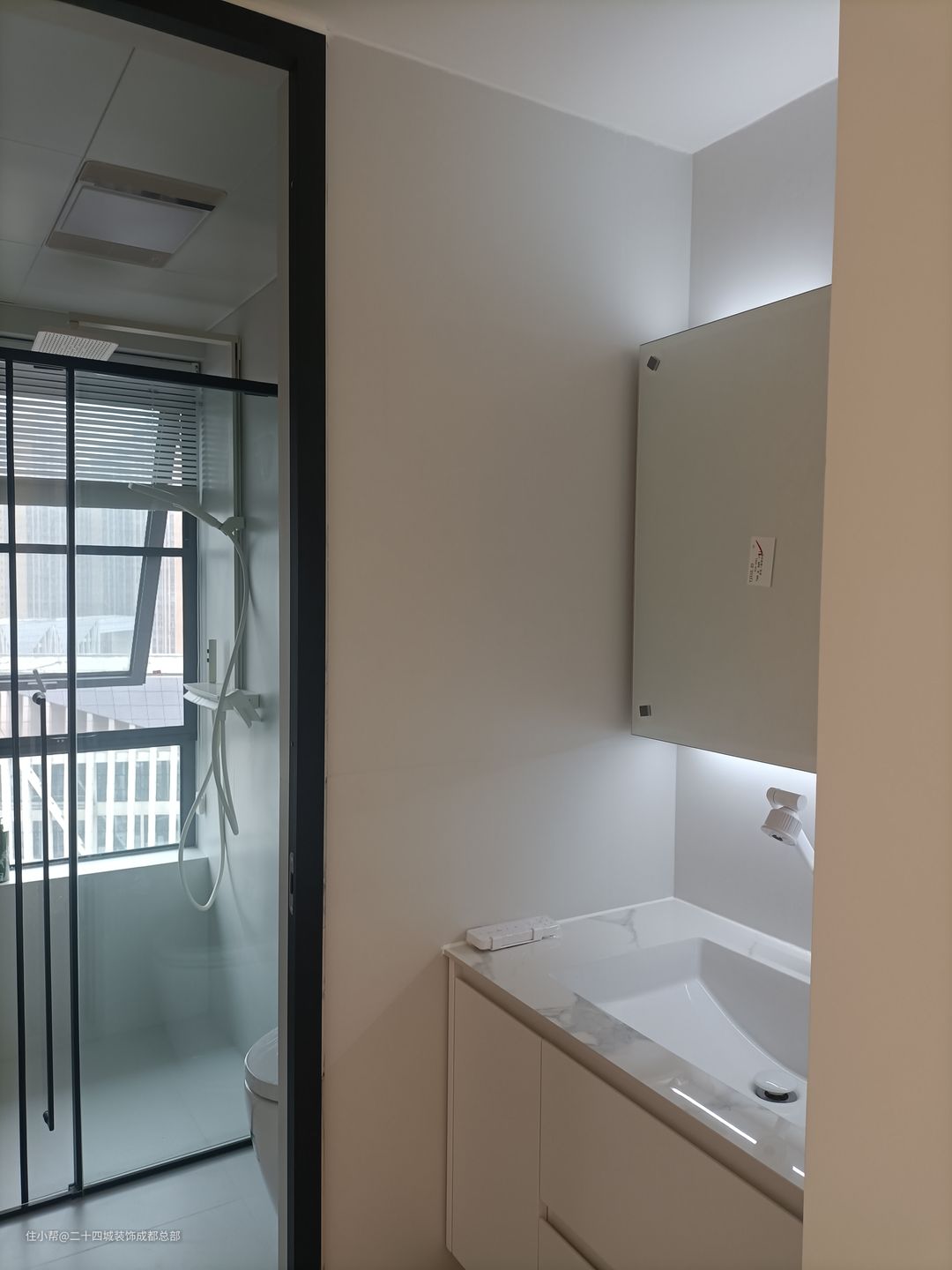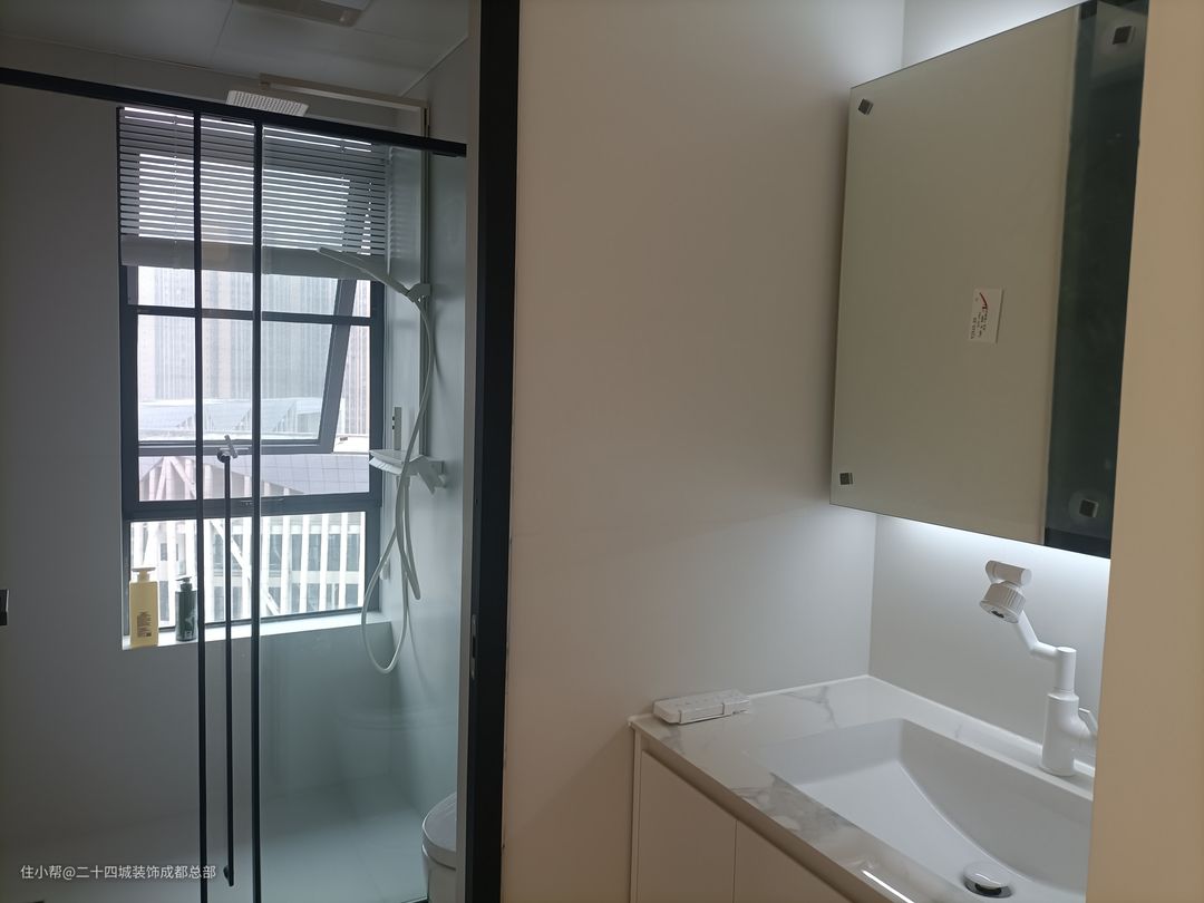 客卫采用干湿分离,独立的洗漱台设计,方便多人使用,也不拥挤,同时洗漱台嵌入灯带,日常化妆洗漱也可以补光。