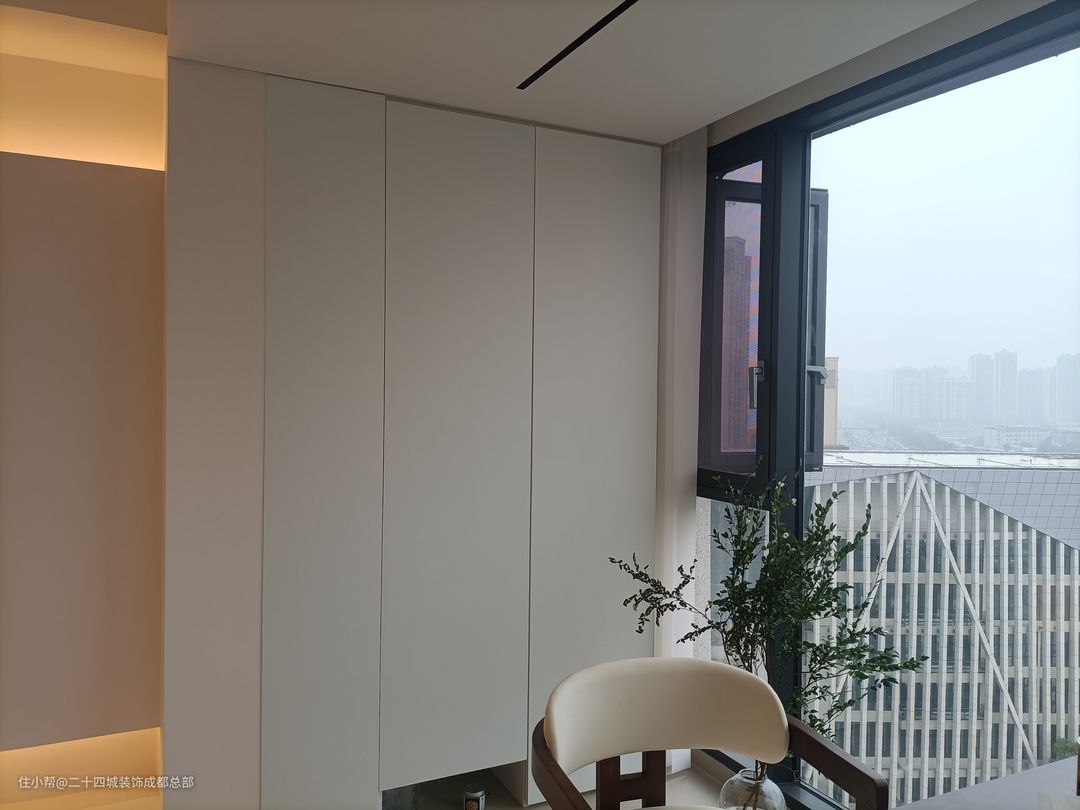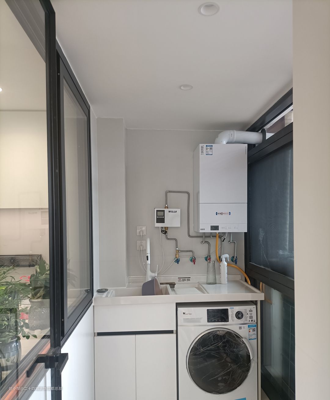 独立的生活阳台,采用嵌入式洗衣机+洗手盆,最大化利用空间,满足日常的生活需求。