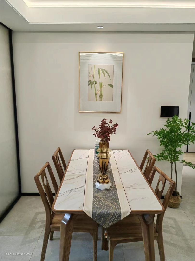 象征团圆的背景,与山峦的平静与内敛相呼应。 俗话说,简单最重要。 新中式家具和对称的沙发背景墙给人无限遐想。 沙发背景墙采用对称设计,暖色胡桃木让它更加生动。 平静而质朴的美; 沙发背景墙将传统水墨画与传统木质装饰图案、中式木质家具相结合,营造出层次感和氛围更强的灯光效果,避免了灯光死角的出现,让空间显得更高大。 展现伟大