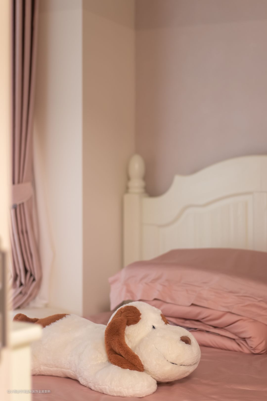 女儿房清新淡雅,没有过多的装饰但洋溢着浪漫的氛围,是充满了少女心的小天地。由衣柜延伸出的书桌,让空间层次感更分明。 在床尾设置了储物柜,开放格设计给孩子心爱的玩偶一个容身之处,让卧室更富有童真童趣。