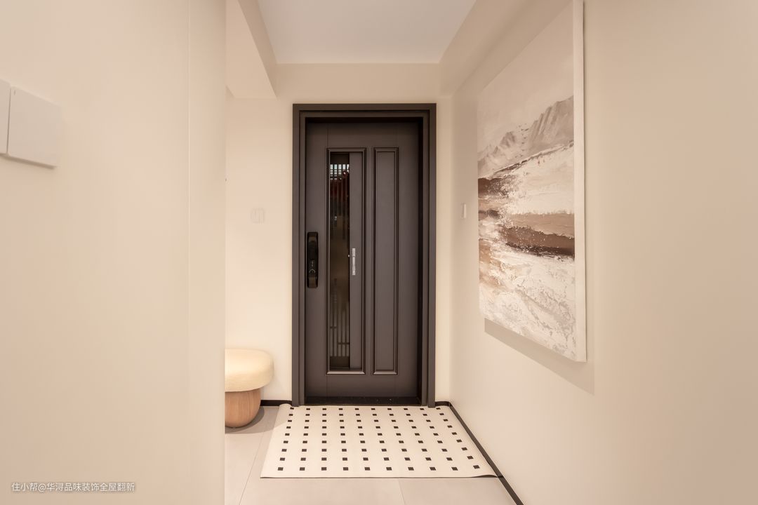 原本玄关较为狭长、昏暗,收纳空间不足,设计师将靠近大门的卧室缩小面积,同时增设鞋帽间。 这让玄关的功能性更丰富,可以提供大量收纳空间,壁龛的设计也可以提高玄关空间的颜值,一进门就让人心旷神怡。