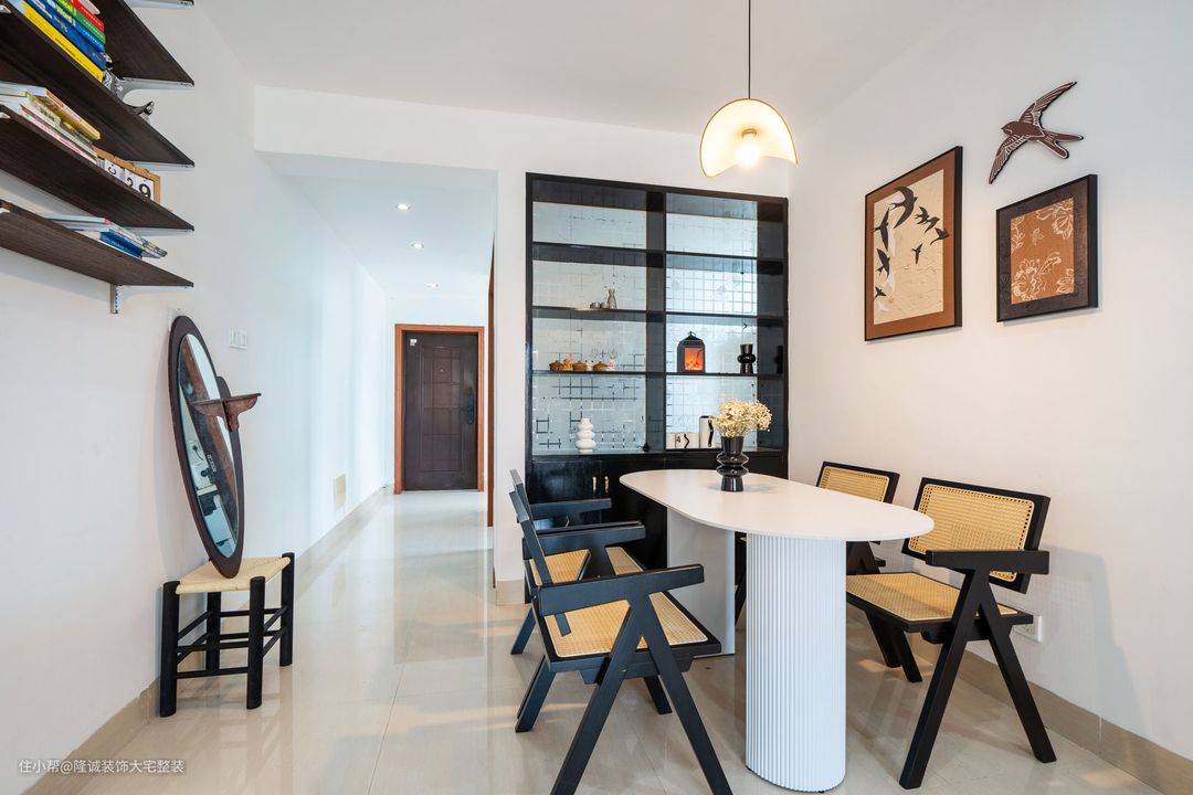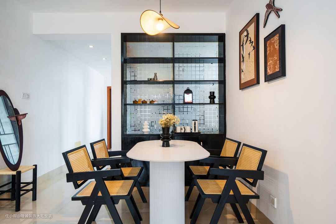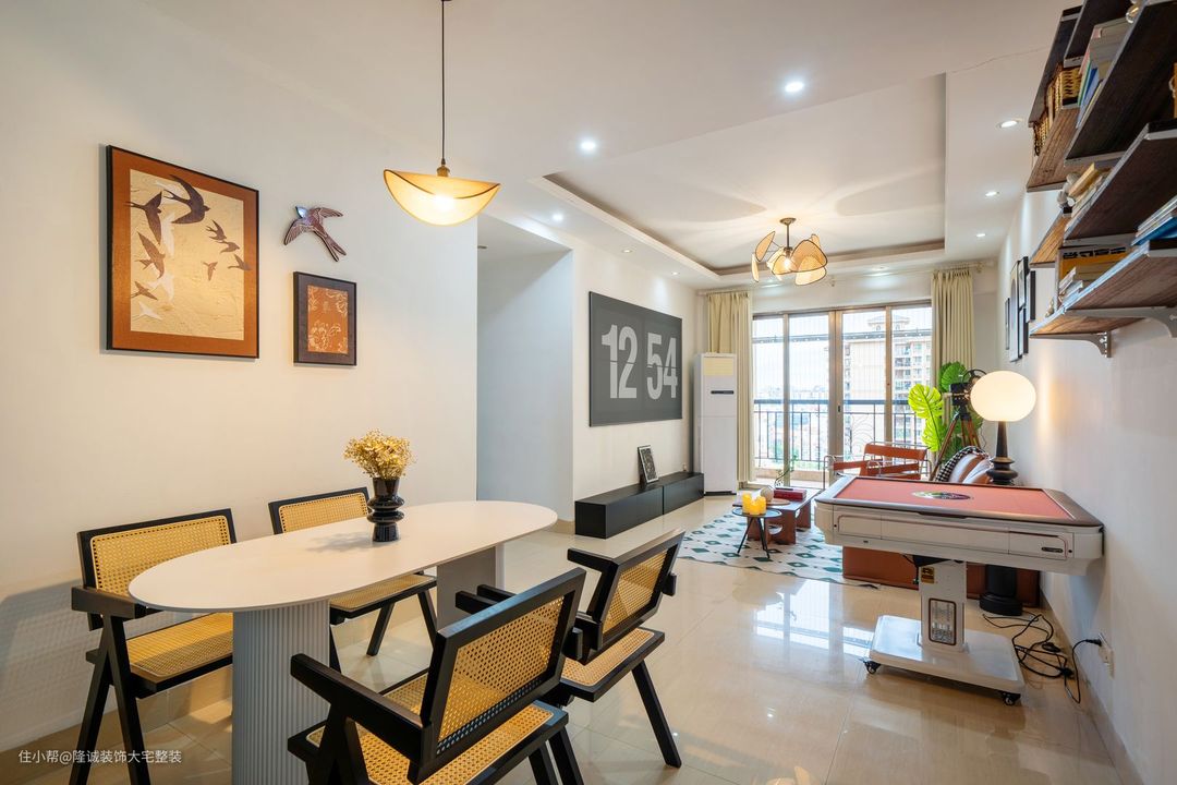 搭配美式风格藤编西餐椅+复古吊灯,整体风格呈现丰富的文化底蕴,让人彷佛时空穿越一般