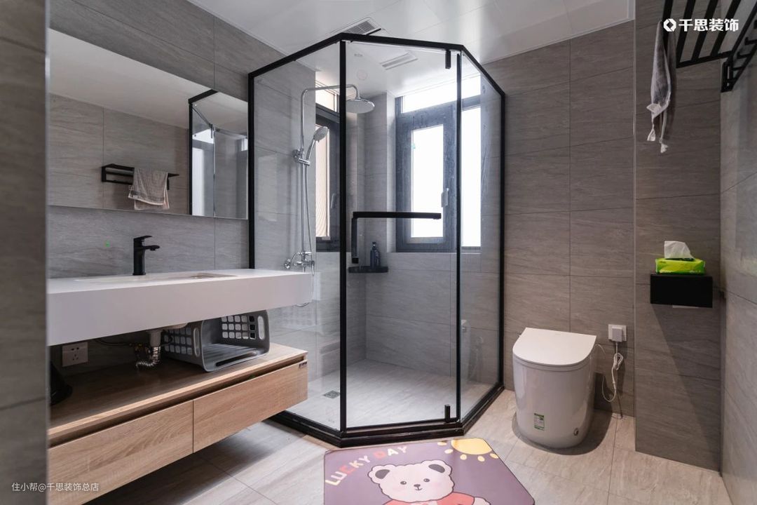 主卫淋浴区用玻璃隔断,既节省空间,又不阻碍光线,避免了水滴飞溅到洗漱台上,以人为本实用性拉满!