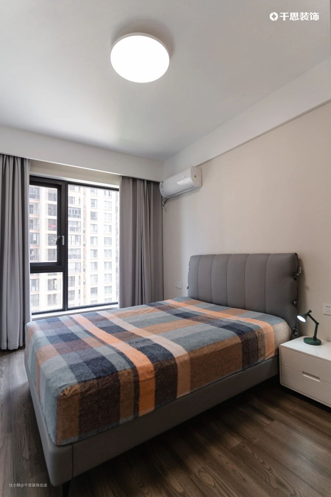 次卧是留给父母的房间,满铺温润的实木地板,背景墙铺刷奶咖色墙漆,浅淡治愈,舒适感满满。