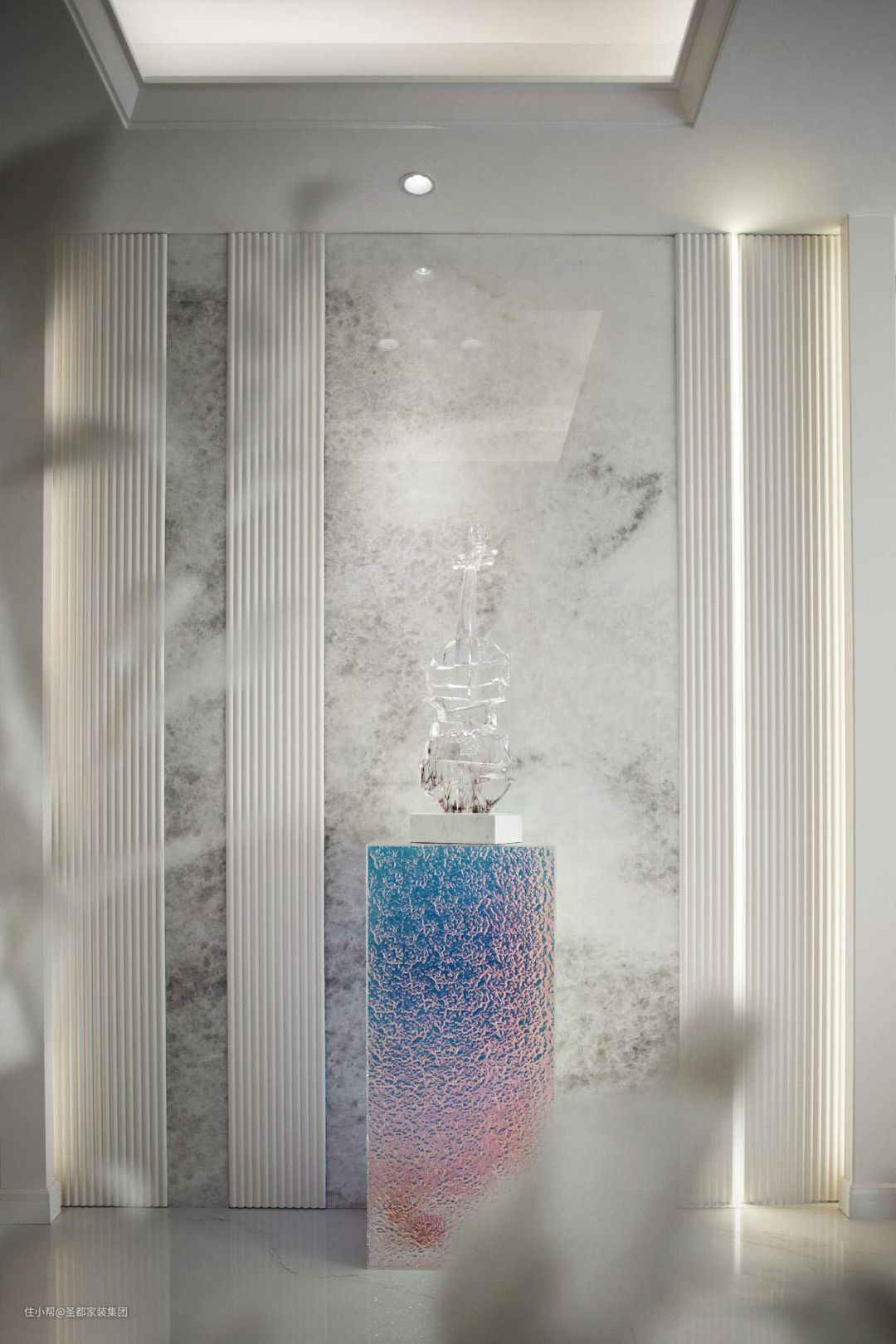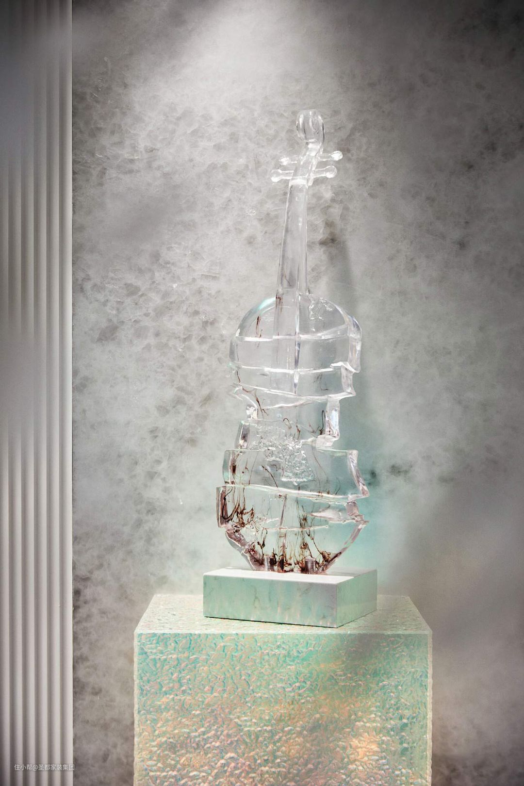 推开门,入目是一个创意端景,白雪公主水晶石背景静默如水,定制的水晶小提琴摆件优雅淡然,共同赋予归家的人儿静谧安然的心境,一秒便能卸下在外一天的疲累。