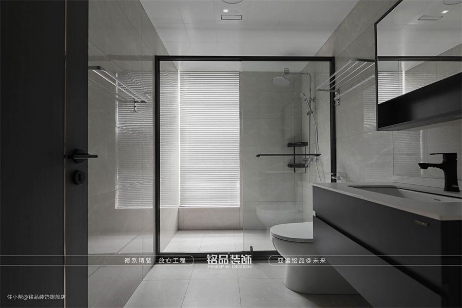 考虑到实际使用情况和需求,我们把卫生间设计成三分离式。做了玻璃淋浴房隔断式,保证了空间的明亮与通透,同时也方便打扫卫生。卫生间整体选择统一色调,从视觉效果上扩大空间,增加整体性,这样看上去也更加干净整洁。洗手台盆下方留出高35cm的空间,可以放置脏衣篓。#卫生间 #干湿分离 #玻璃隔断