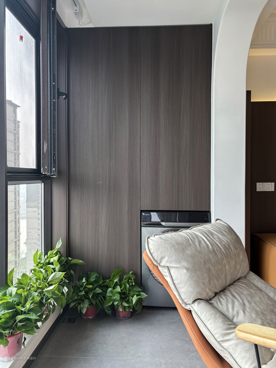 阳台做了零嵌的洗衣机,上面的柜子后期是可以拆除活动板增加烘干机。