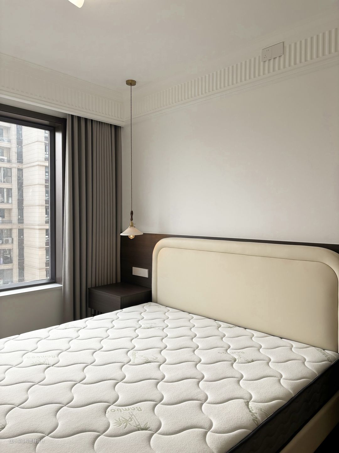 整个房间只有101平,想要客厅的空间大一点,主卧不想要做l型的衣柜,但是厕所又直对床头。