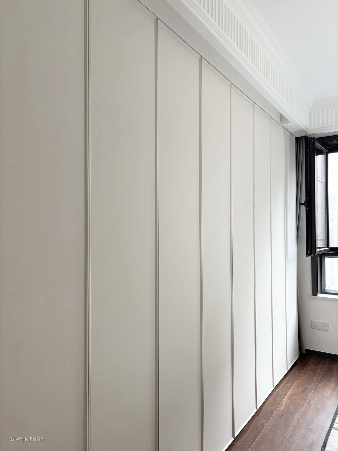 整个房间只有101平,想要客厅的空间大一点,主卧不想要做l型的衣柜,但是厕所又直对床头。