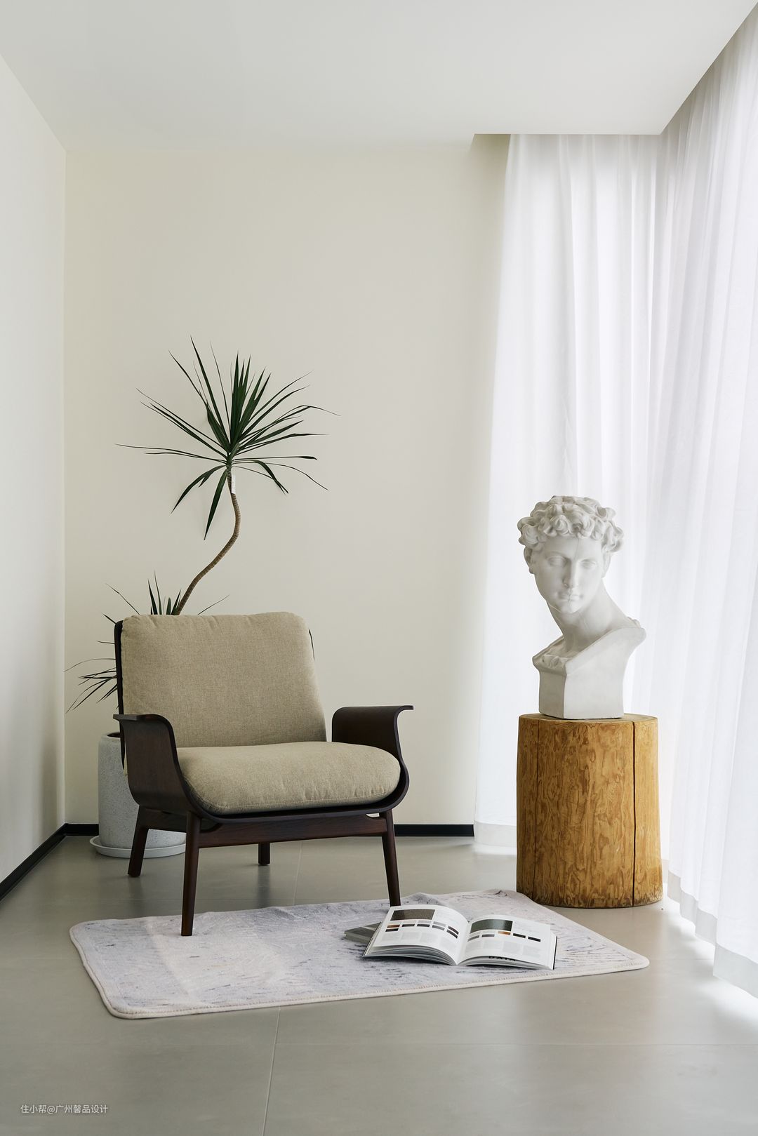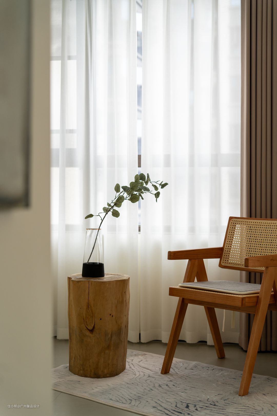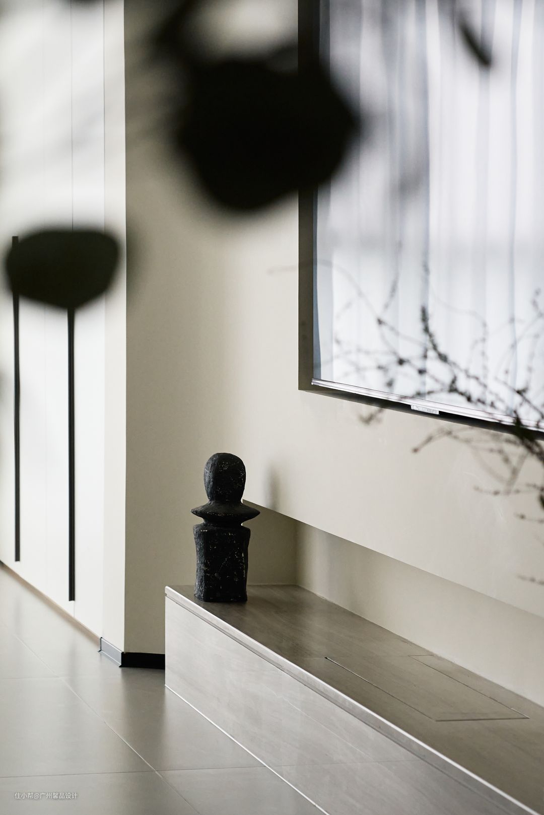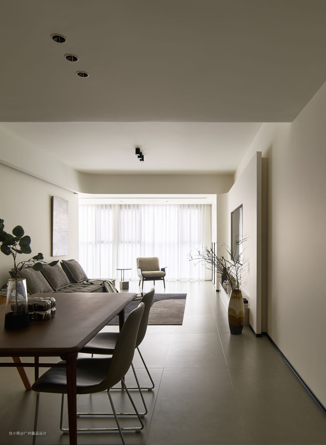 原本是和局促的过道共生,自然少不了小气,不如再“做空”,更精致的去营造墙角的小景,活力的屏风背景板、风起时滴答的风铃灯、饭桌上的“柴米油盐”成了生活的咸淡适中。