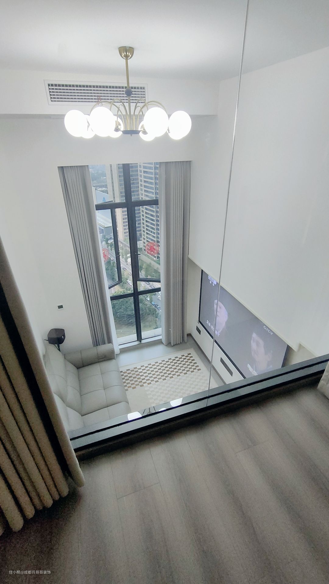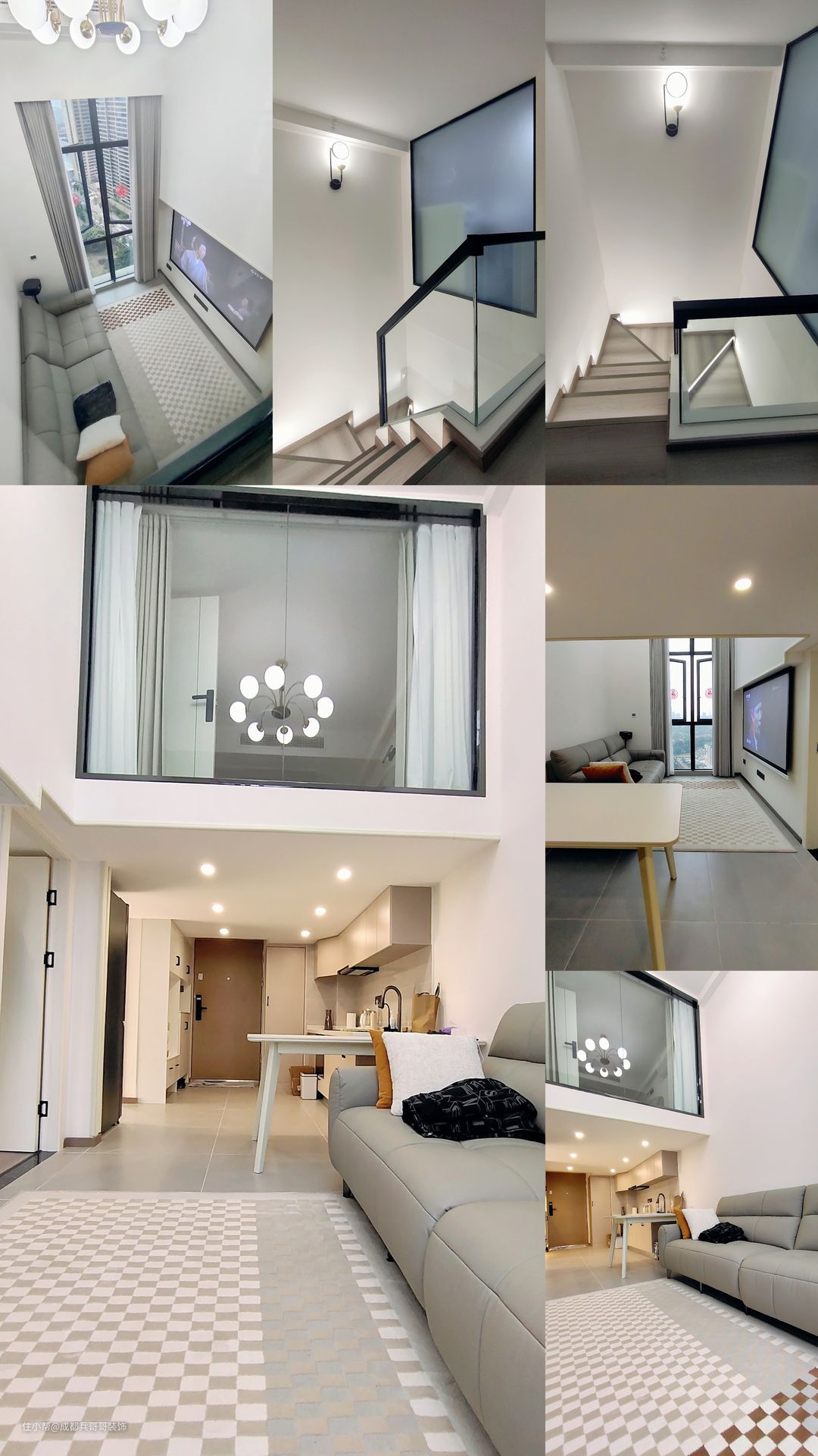 ❤🧡💛💚💙💜🤎❤ 本案例位于成都市·海伦天麓,建筑面积60m²,套内面积30m²,层高4.2米,有梁的地方层高3.9米,是一套loft小公寓,长宽尺寸为5.655米*5.147米。 该公寓进行了二层钢结构搭建,选择1/4镂空,3/4搭建,钢混结构,承重更足,使用年限更久。屋主要求保留3个卧室,一二楼都要有卫生间,喜欢现代简约风格。设计师根据其需求,给出以下4点建议: 1.钢结构阁楼:因为层高不高,所以挑空设计会好很多,整个室内采光也会有所改善; 2.楼梯:保留3个卧室,楼梯就需要占地面积很小,而且还很实用,可以搭建U形钢结构楼梯; 3.采光性:室内层高4.2米,钢结构全搭建的话室内就会会暗沉,压抑感很强,所以全景窗户留了一半出来,挑空客厅设计,室内采光感得到了解决; 4.二楼次卧靠客厅这一侧,建议不砌墙选择全景玻璃隔断,室内采光通透感更好。 🔴【一楼空间:客厅 餐厅 厨房 卫生间 书房 入户玄关】 🟣【二楼空间:主卧 次卧 卫生间】