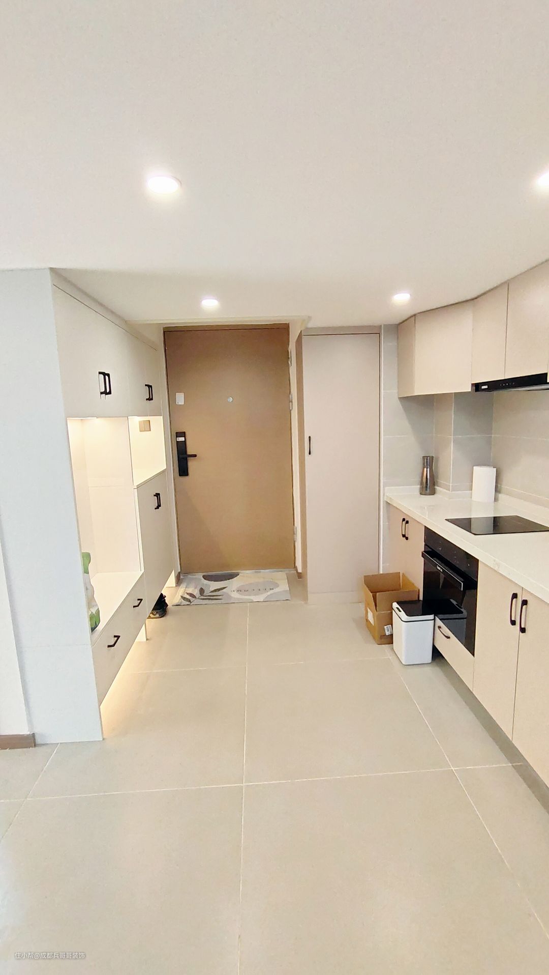 入户空间,右侧玄关鞋柜,安装了嵌入式灯条,感应式设计,拥有换鞋凳,通顶式设计储物十足。