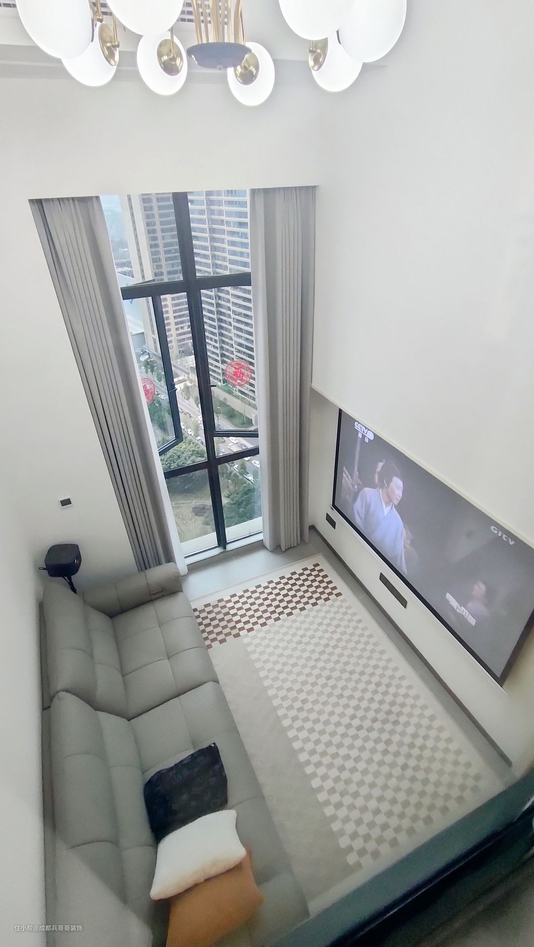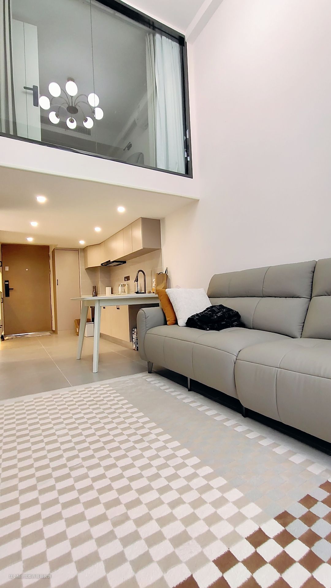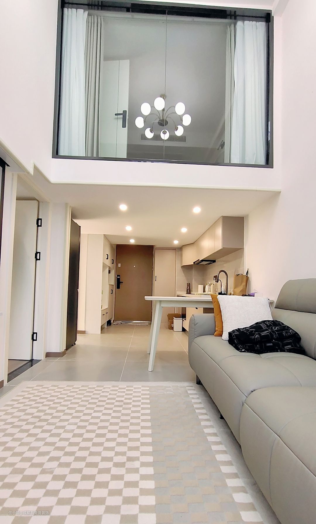 ❤🧡💛💚💙💜🤎❤ 本案例位于成都市·海伦天麓,建筑面积60m²,套内面积30m²,层高4.2米,有梁的地方层高3.9米,是一套loft小公寓,长宽尺寸为5.655米*5.147米。 该公寓进行了二层钢结构搭建,选择1/4镂空,3/4搭建,钢混结构,承重更足,使用年限更久。屋主要求保留3个卧室,一二楼都要有卫生间,喜欢现代简约风格。设计师根据其需求,给出以下4点建议: 1.钢结构阁楼:因为层高不高,所以挑空设计会好很多,整个室内采光也会有所改善; 2.楼梯:保留3个卧室,楼梯就需要占地面积很小,而且还很实用,可以搭建U形钢结构楼梯; 3.采光性:室内层高4.2米,钢结构全搭建的话室内就会会暗沉,压抑感很强,所以全景窗户留了一半出来,挑空客厅设计,室内采光感得到了解决; 4.二楼次卧靠客厅这一侧,建议不砌墙选择全景玻璃隔断,室内采光通透感更好。 🔴【一楼空间:客厅 餐厅 厨房 卫生间 书房 入户玄关】 🟣【二楼空间:主卧 次卧 卫生间】