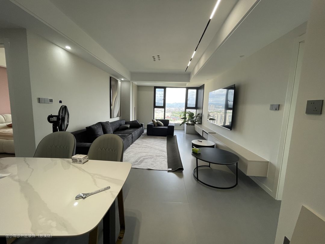 地面用的是750*1500mm 柔光大板砖,配上顶上无主灯,灯光打起来效果满满,没有累赘背景墙,仅仅用了乳胶漆,颜值也很高